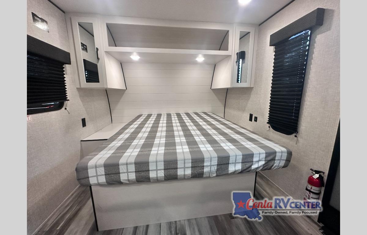 This travel trailer includes everything you need for fun trips at the lake. When you arrive at the campground, you can unload the exterior storage, then put out the 12' power awning with LED lights. There is also an LP Quick Connect if you want to hook up your own grill! The booth dinette inside will provide a place to dine together, and the full rear bath with a tub/shower will make bath time easier than ever for little ones. A front RV queen bed will provide a great night's rest, and the privacy curtain will be appreciated when you're getting dressed in the morning. The optional STX Edition can be added on this model which includes 16 in. off-road tires, triple entry steps, a power tongue jack, and more!