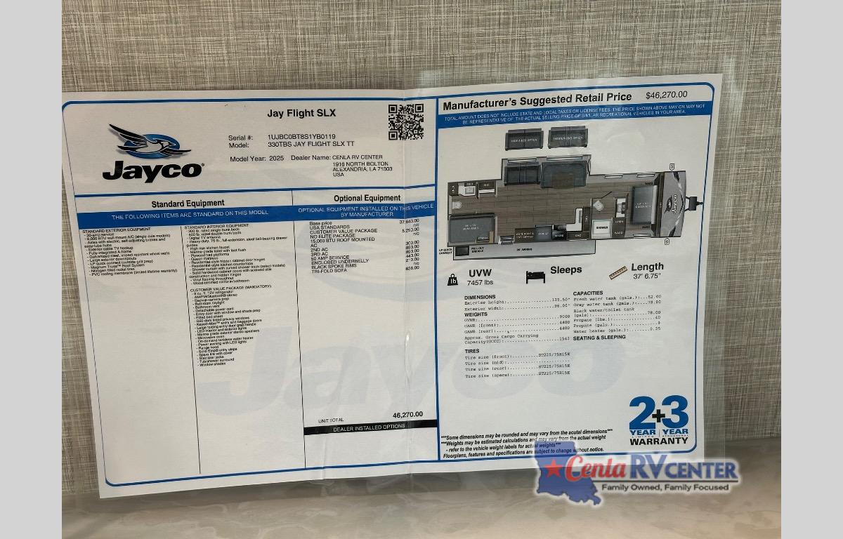 Jayco Jay Flight SLX travel trailer 330TBS highlights: