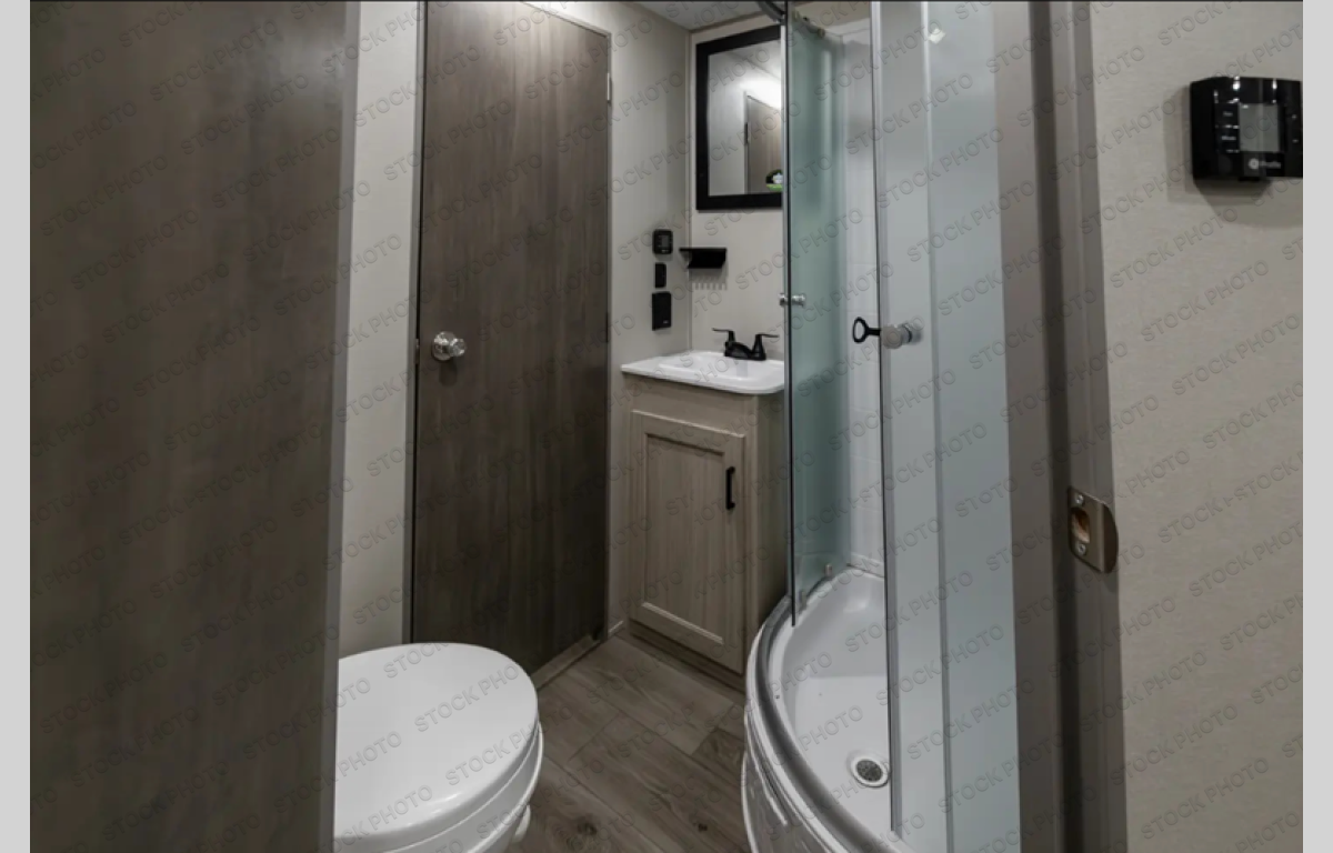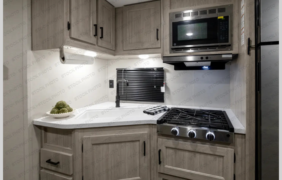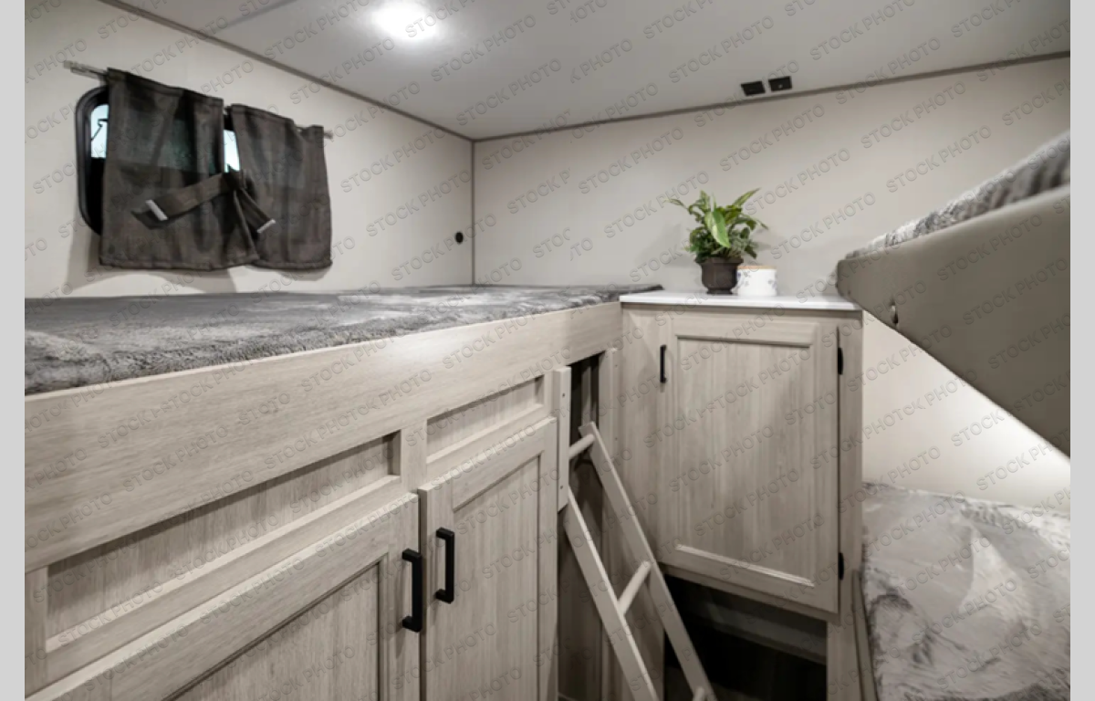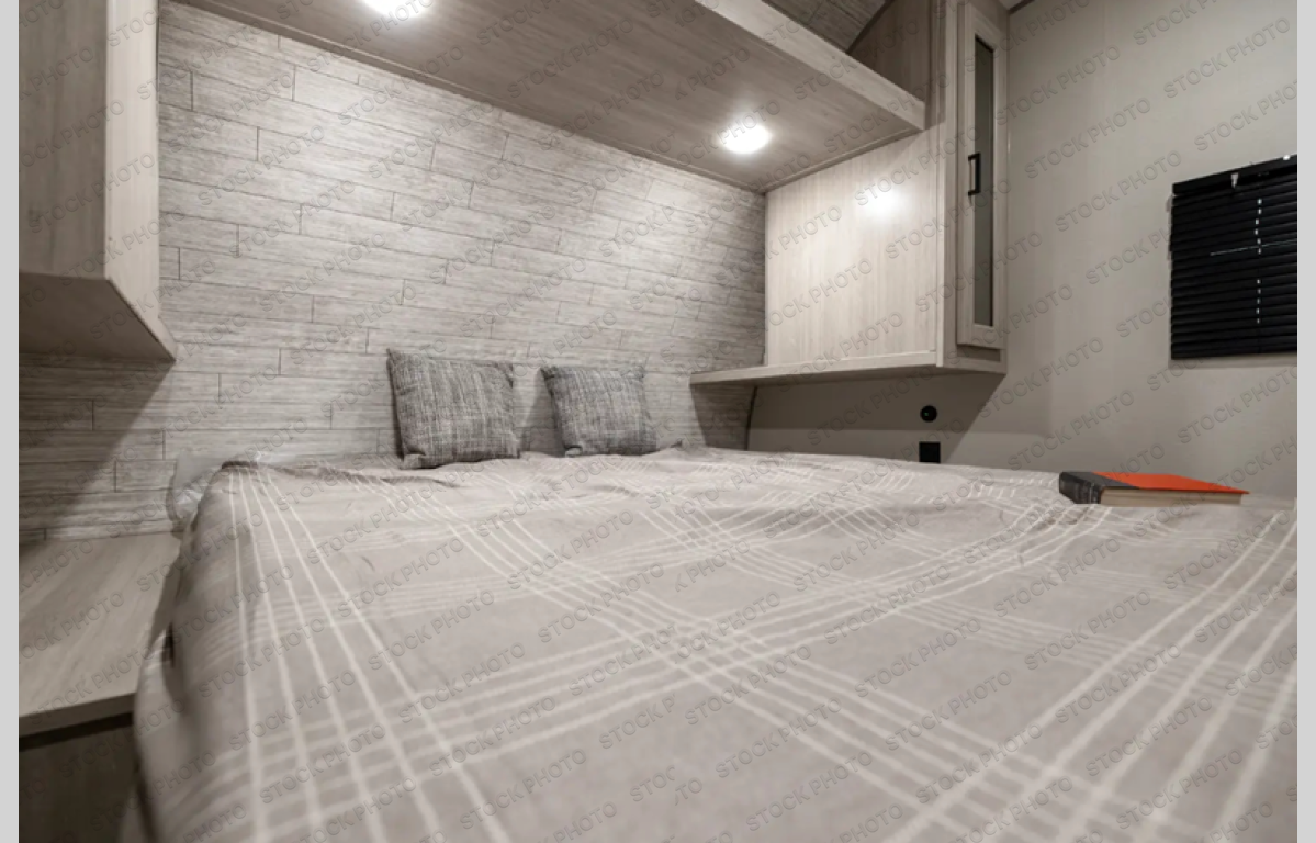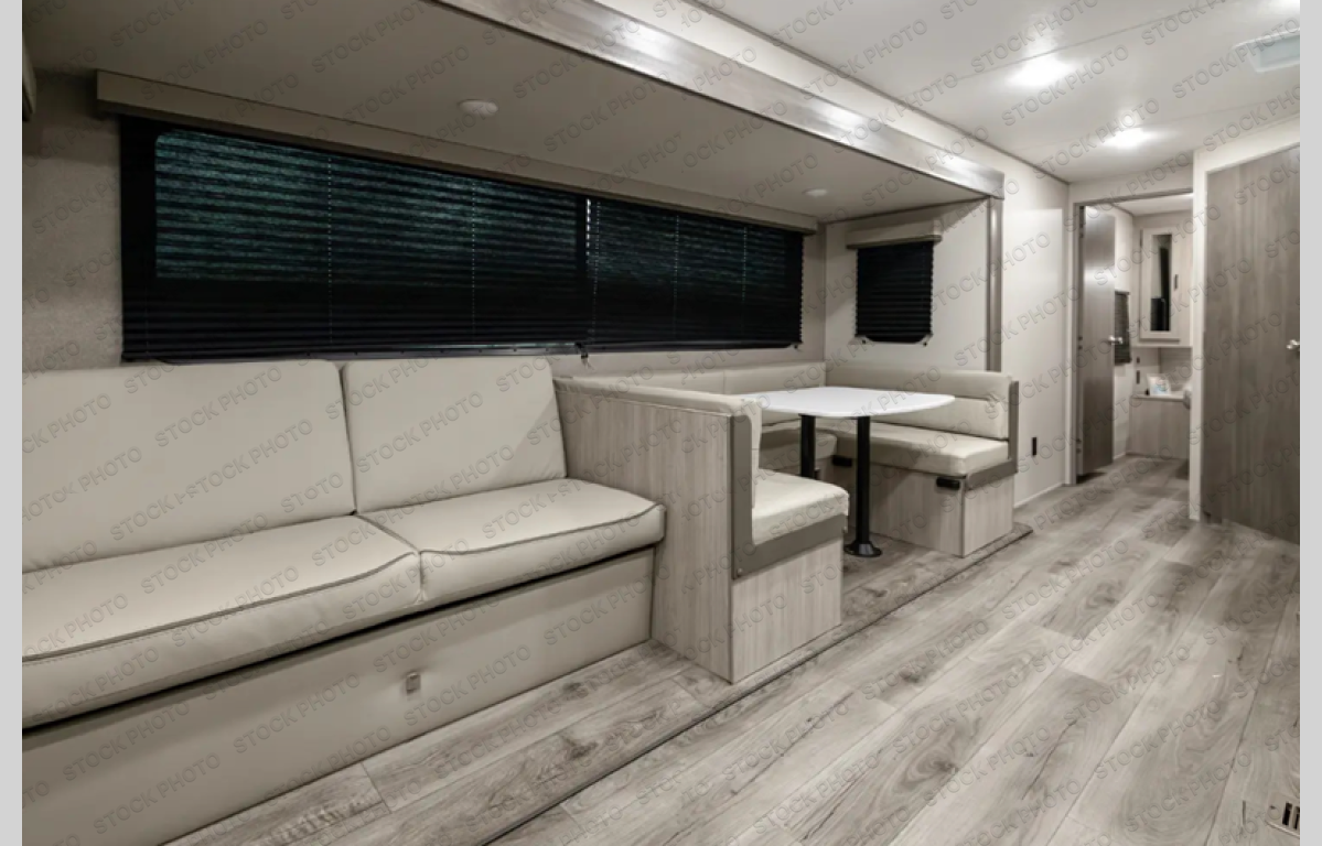 If you enjoy camping with family or a larger friend group, this trailer is sure to meet your needs! The rear private bunkhouse includes single-size bunks plus double-size bunks, allowing you to sleep up to six here alone! You'll have the 60" x 74" queen bed all to yourselves in the front master bedroom, and any additional guests can sleep on the U-shaped dinette and sofa within the large slide out. The chef of your group can use the GE stainless three burner cooktop or microwave oven to create meals each day, and an optional full-size exterior camp kitchen can be added if you enjoy cooking outdoors. A walk-in pantry includes washer and dryer prep if you choose to add these appliances, and everyone can stay clean all week thanks to the dual entry full bath!