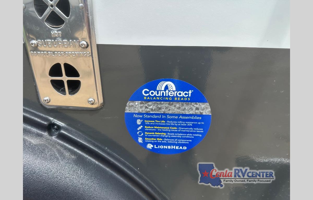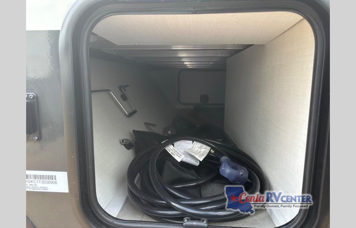 This travel trailer will feel more like home with its front bedroom and walk-around full-size bed. You'll enjoy the 32" 12V TV as you relax on the 72" sofa with a table and cupholders. The full rear bath includes a spacious shower to clean up in each day and there is a linen closet for clean towels. When you're ready to prepare dinner you'll have a three burner cooktop and microwave oven indoors, and a griddle outdoors! And don't forget the exterior storage allows you to bring along beach toys and tackle boxes. The optional Power Package available on this model includes three 200W solar panels, a side solar plug-in, a 3kW 160A inverter, and more off-grid features!