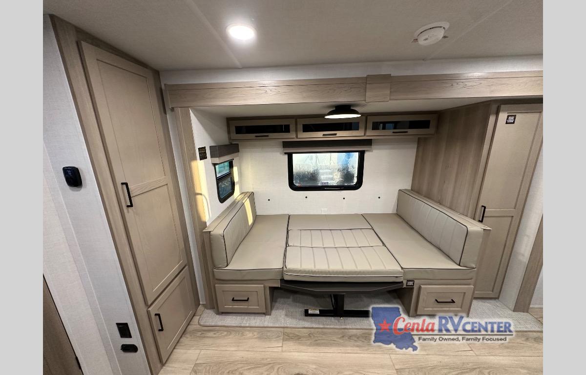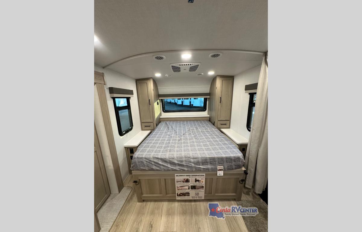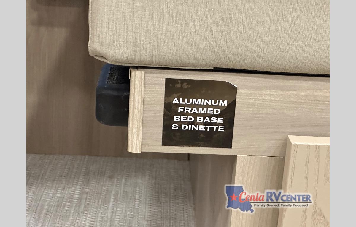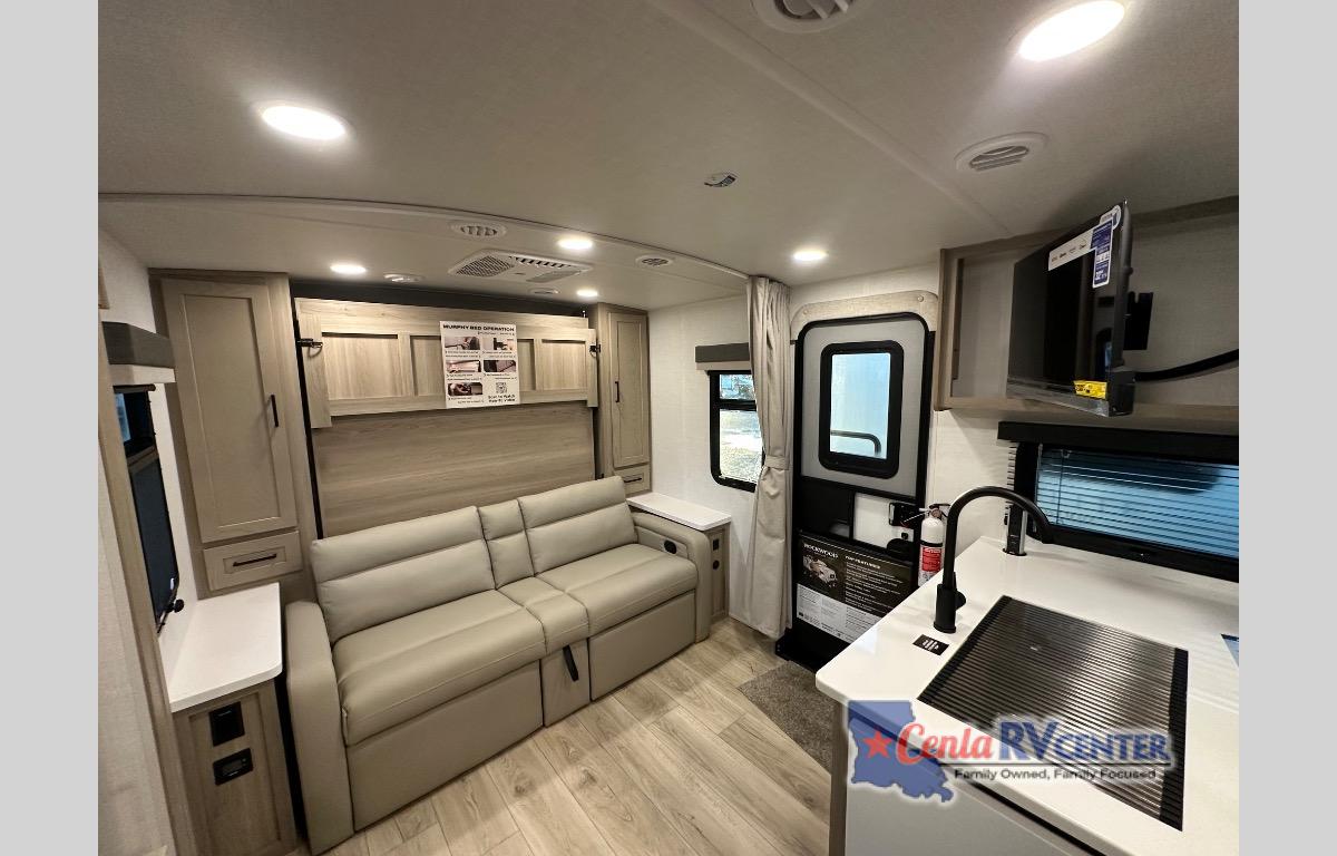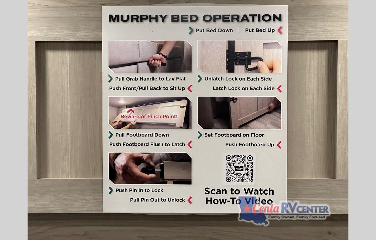 Finally, a lightweight travel trailer with double-size bunks for the kids or your guests! You'll find the versatile Murphy bed up front will be super convenient when you need more space to move around, and the 72" sofa will provide comfy seating space when the bed is put up. This model also includes a U-shaped dinette slide perfect to dine around, play games, and sleep additional guests. A 32" TV in the main living area will allow you to watch your favorite shows in the evenings, or you may just find yourselves outdoors under the 18' power awning with LED lights. And check out the pass-through storage, plus additional exterior storage for your hiking gear!