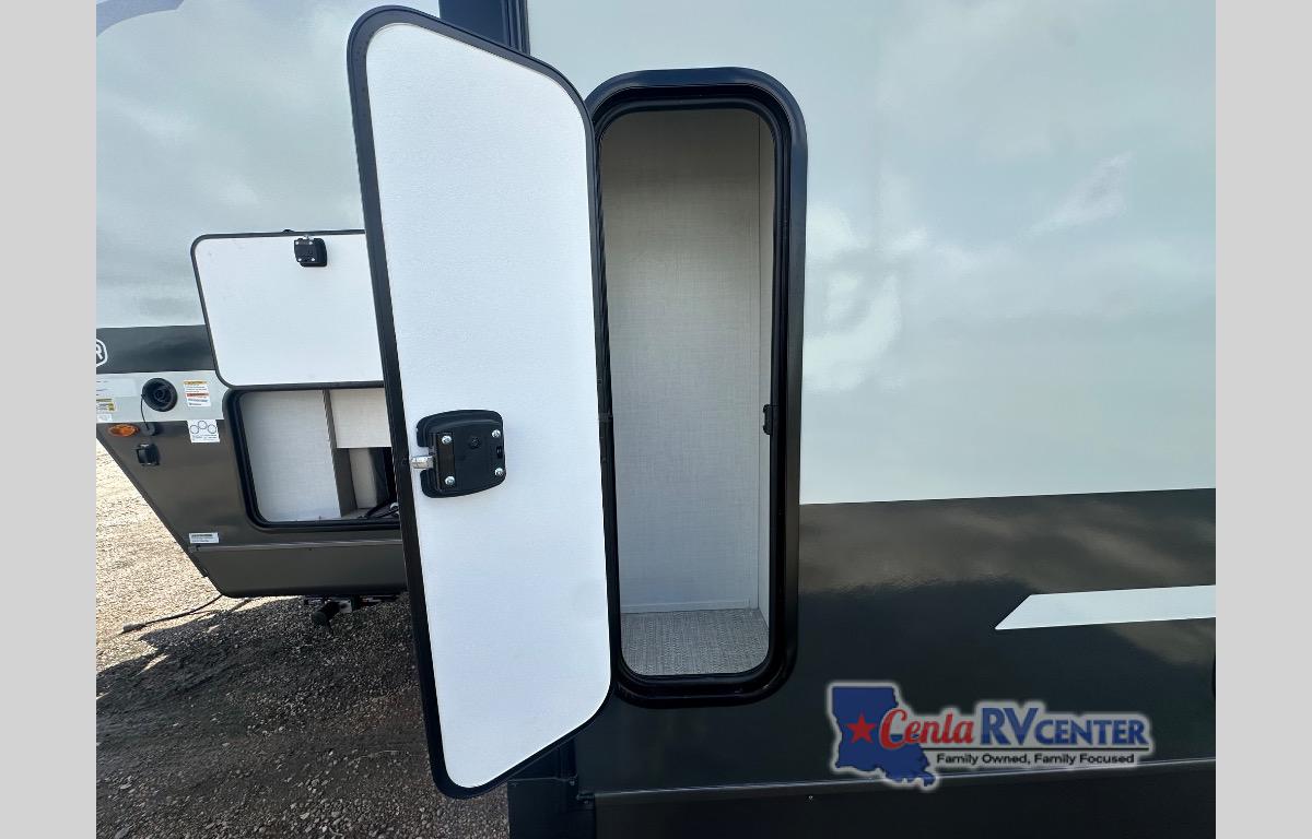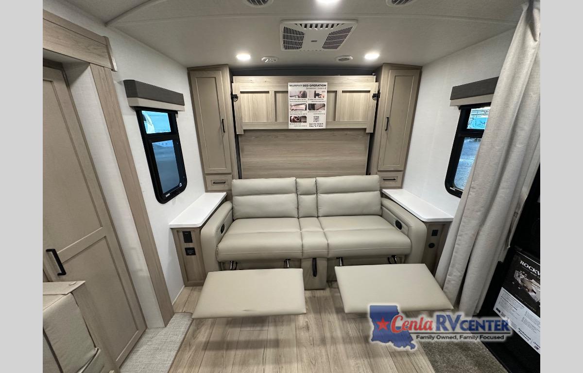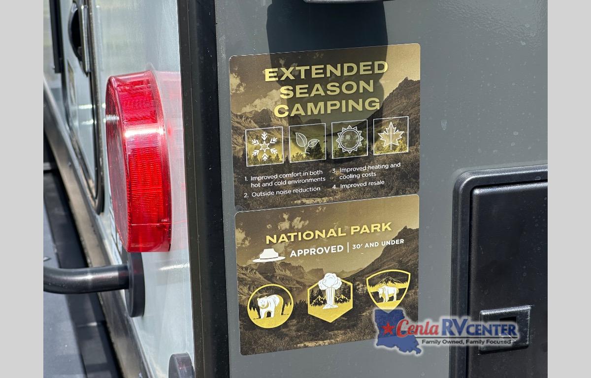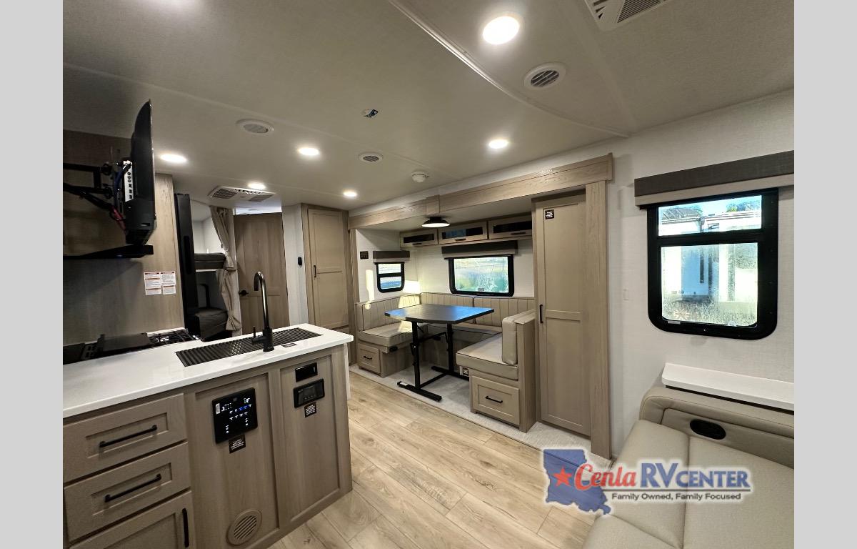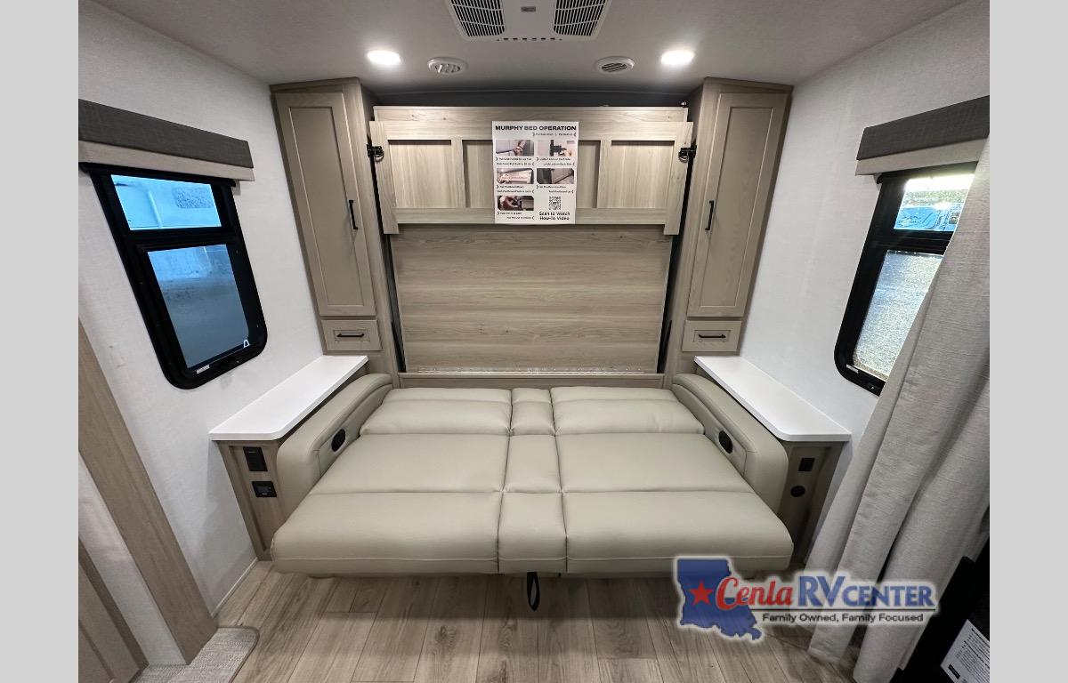 Finally, a lightweight travel trailer with double-size bunks for the kids or your guests! You'll find the versatile Murphy bed up front will be super convenient when you need more space to move around, and the 72" sofa will provide comfy seating space when the bed is put up. This model also includes a U-shaped dinette slide perfect to dine around, play games, and sleep additional guests. A 32" TV in the main living area will allow you to watch your favorite shows in the evenings, or you may just find yourselves outdoors under the 18' power awning with LED lights. And check out the pass-through storage, plus additional exterior storage for your hiking gear!