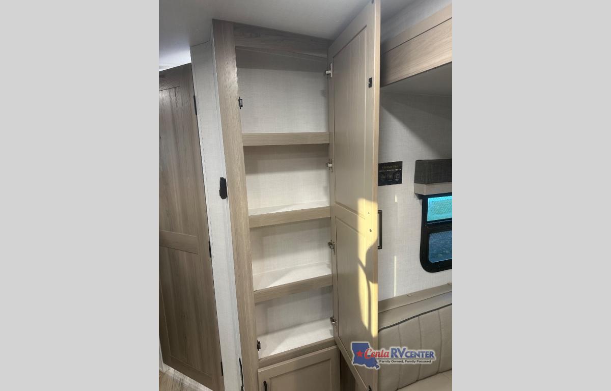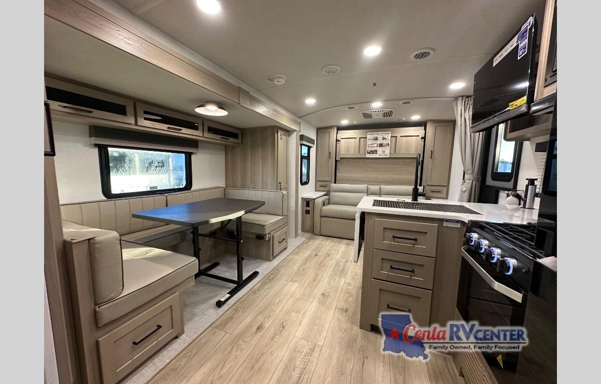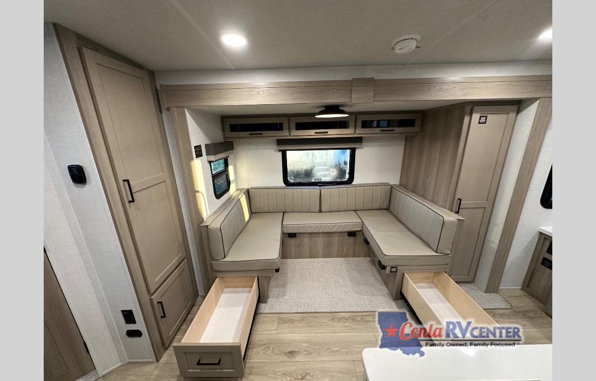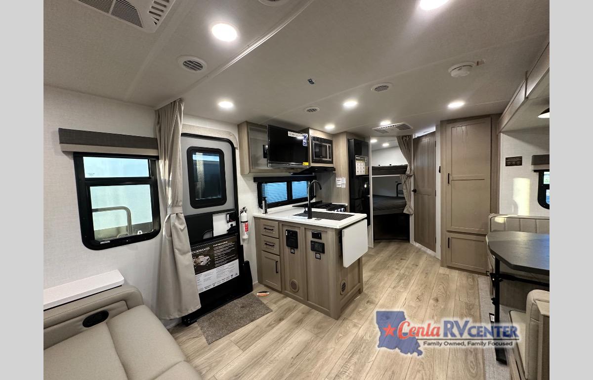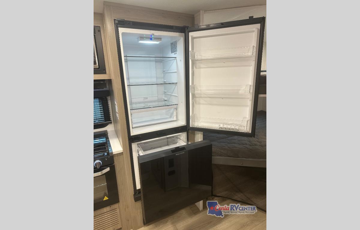 Finally, a lightweight travel trailer with double-size bunks for the kids or your guests! You'll find the versatile Murphy bed up front will be super convenient when you need more space to move around, and the 72" sofa will provide comfy seating space when the bed is put up. This model also includes a U-shaped dinette slide perfect to dine around, play games, and sleep additional guests. A 32" TV in the main living area will allow you to watch your favorite shows in the evenings, or you may just find yourselves outdoors under the 18' power awning with LED lights. And check out the pass-through storage, plus additional exterior storage for your hiking gear!