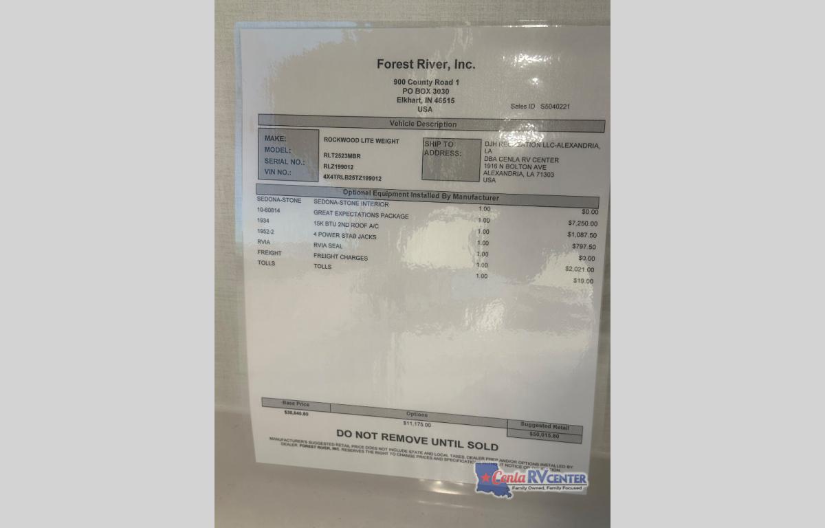 Cenla Camping Center is not responsible for any misprints, typos, or errors found in our website pages. Any price listed excludes sales tax, registration tags, and delivery fees. Manufacturer-provided pictures, specifications and features may be used as needed. Inventory shown may be only a partial listing of the entire inventory. Please contact us at 318-445-6981 for availability as our inventory changes rapidly. All calculated payments are an estimate only and do not constitute a commitment that financing or a specific interest rate or term is available.