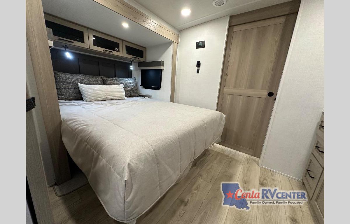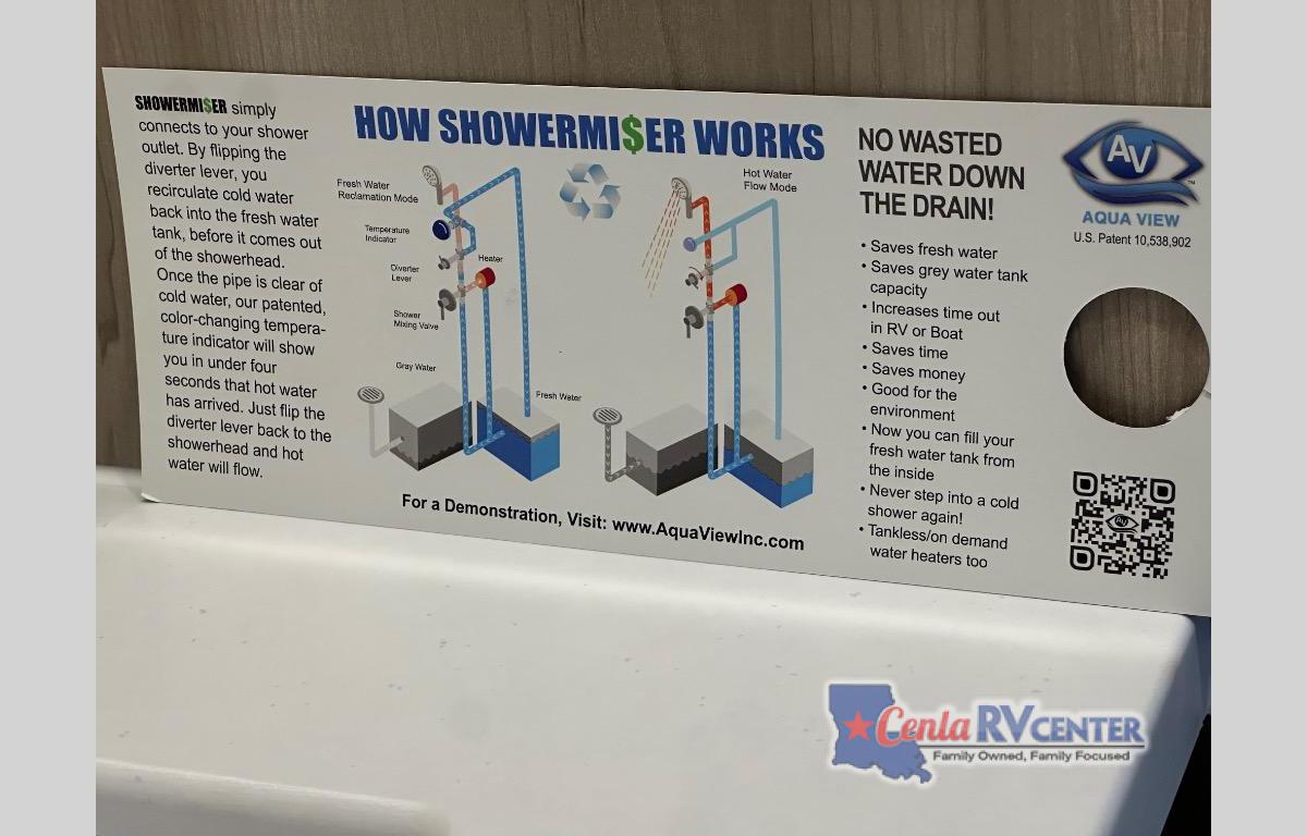 This travel trailer is the best option for you and your partner! The lavish full rear bathroom features a spacious layout and a convenient linen closet, perfect for relaxation and refreshment. The elegant bedroom boasts a plush queen bed, ample wardrobe space, and stylish dresser, creating a serene retreat. The spacious living room and kitchen combined area is the heart of the trailer, featuring plush theater seating for cozy movie nights, a generous closet for storing essentials, and a 12V Smart TV for entertainment on the go. Plus, the expansive countertop with chairs provides a perfect spot for gourmet meals or socializing, while the premium three-burner cooktop, well-stocked kitchen pantry, and high-performance microwave make meal prep and cooking a true delight.