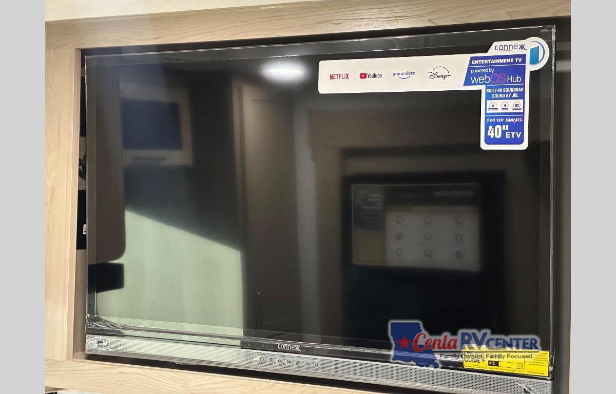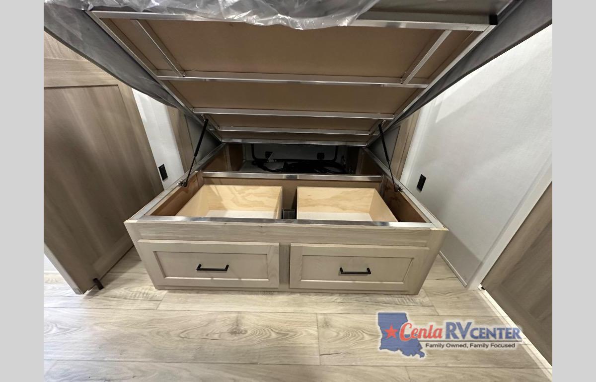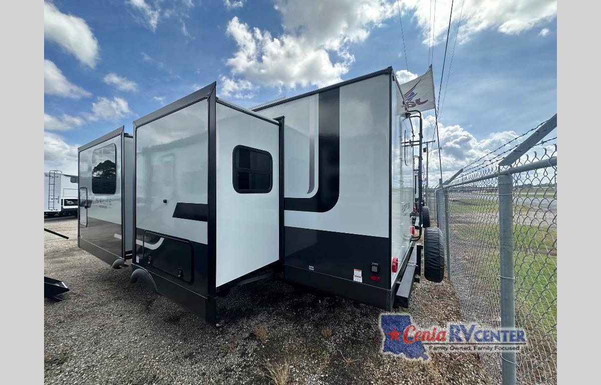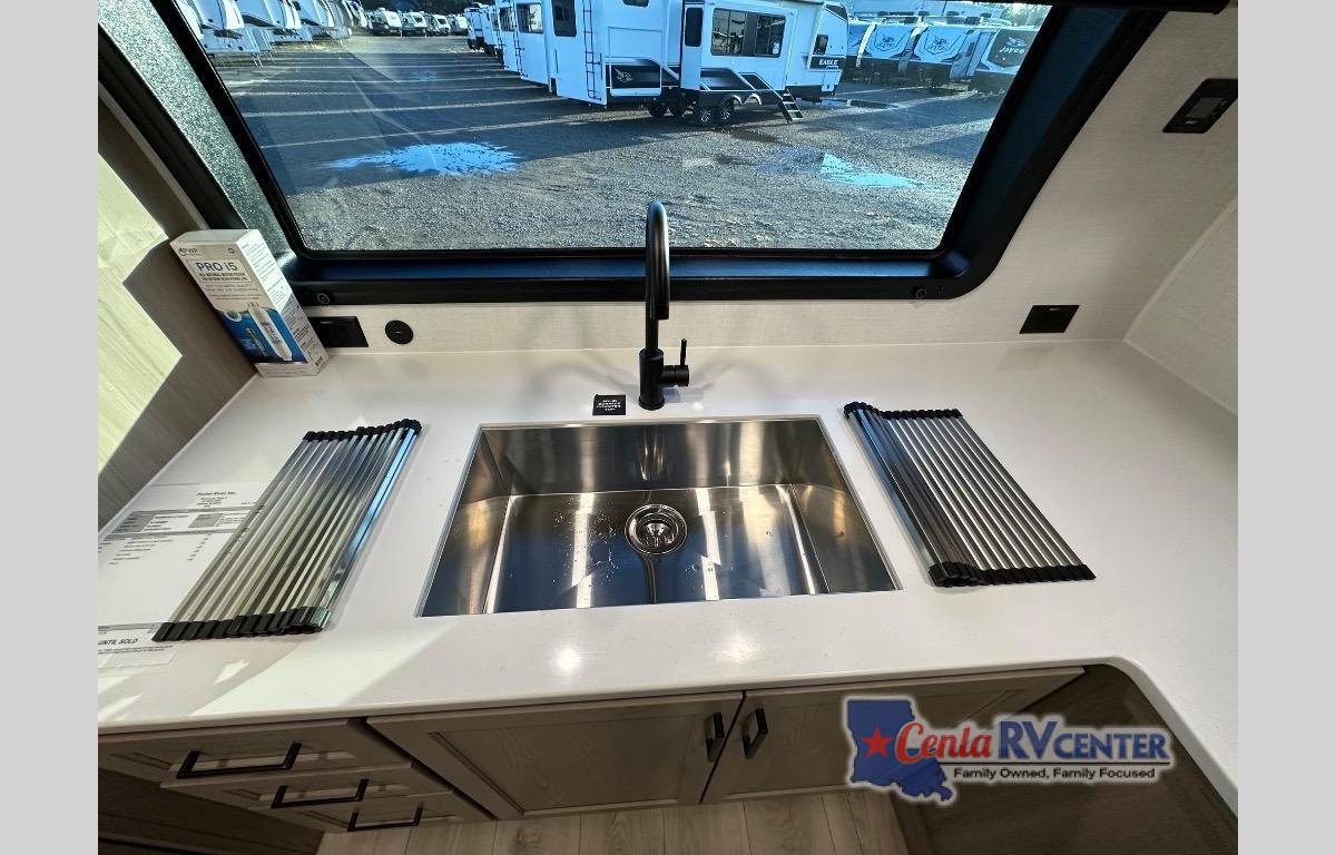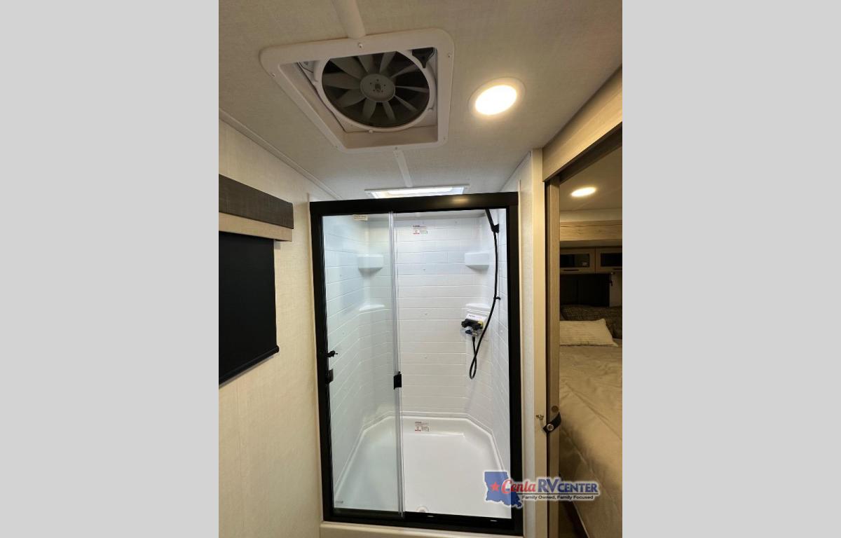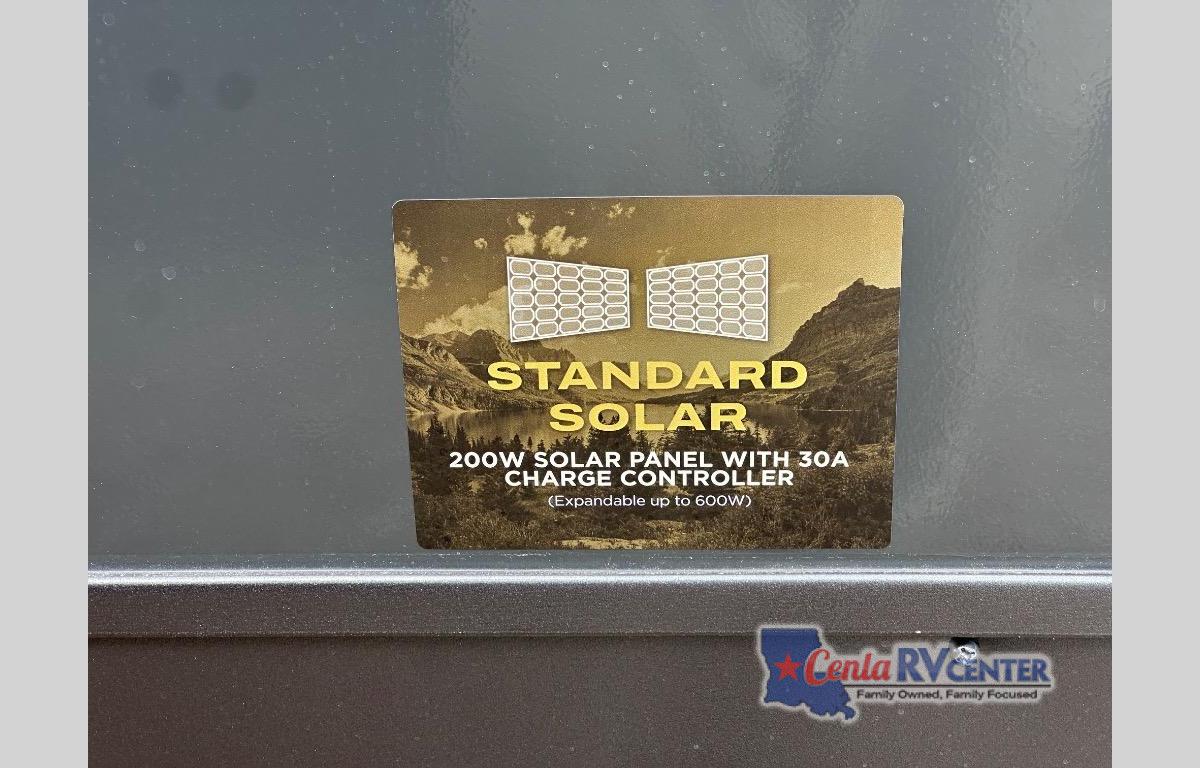 This travel trailer is the best option for you and your partner! The lavish full rear bathroom features a spacious layout and a convenient linen closet, perfect for relaxation and refreshment. The elegant bedroom boasts a plush queen bed, ample wardrobe space, and stylish dresser, creating a serene retreat. The spacious living room and kitchen combined area is the heart of the trailer, featuring plush theater seating for cozy movie nights, a generous closet for storing essentials, and a 12V Smart TV for entertainment on the go. Plus, the expansive countertop with chairs provides a perfect spot for gourmet meals or socializing, while the premium three-burner cooktop, kitchen pantry, and microwave make meal prep and cooking a true delight.