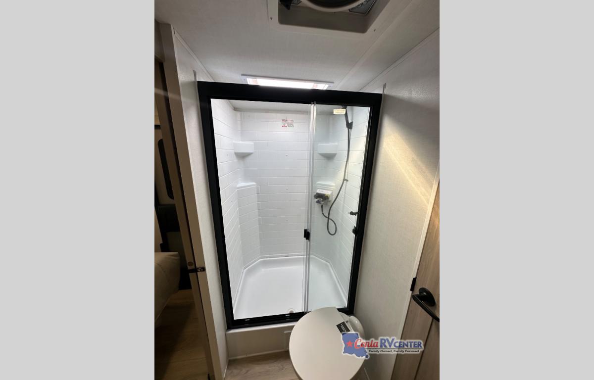 This double slide out travel trailer is perfect for weekend trips or extended stays! Your crew can play a game around the U-shaped dinette, relax on the theater seat across from the TV, or visit outdoors under the 21' awning. The fully-equipped kitchen allows you to make meals each day, and the walk-thru bath is easily accessible for everyone to use. This model also includes a front master bedroom with a queen bed, a wardrobe slide out, and one of the dual entry doors for convenience!