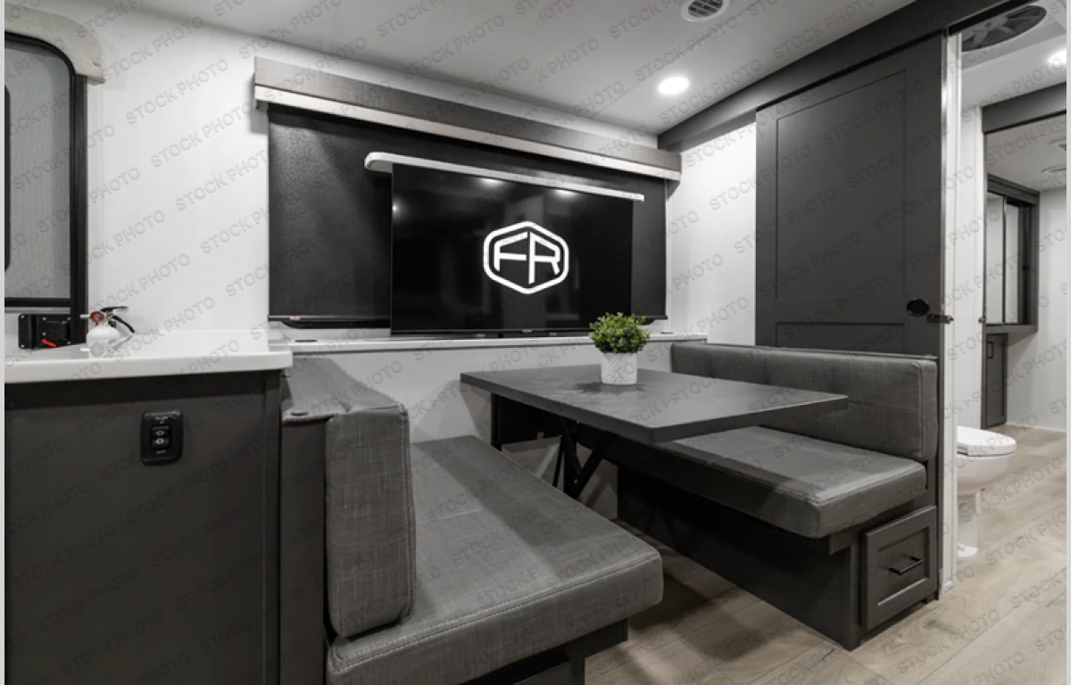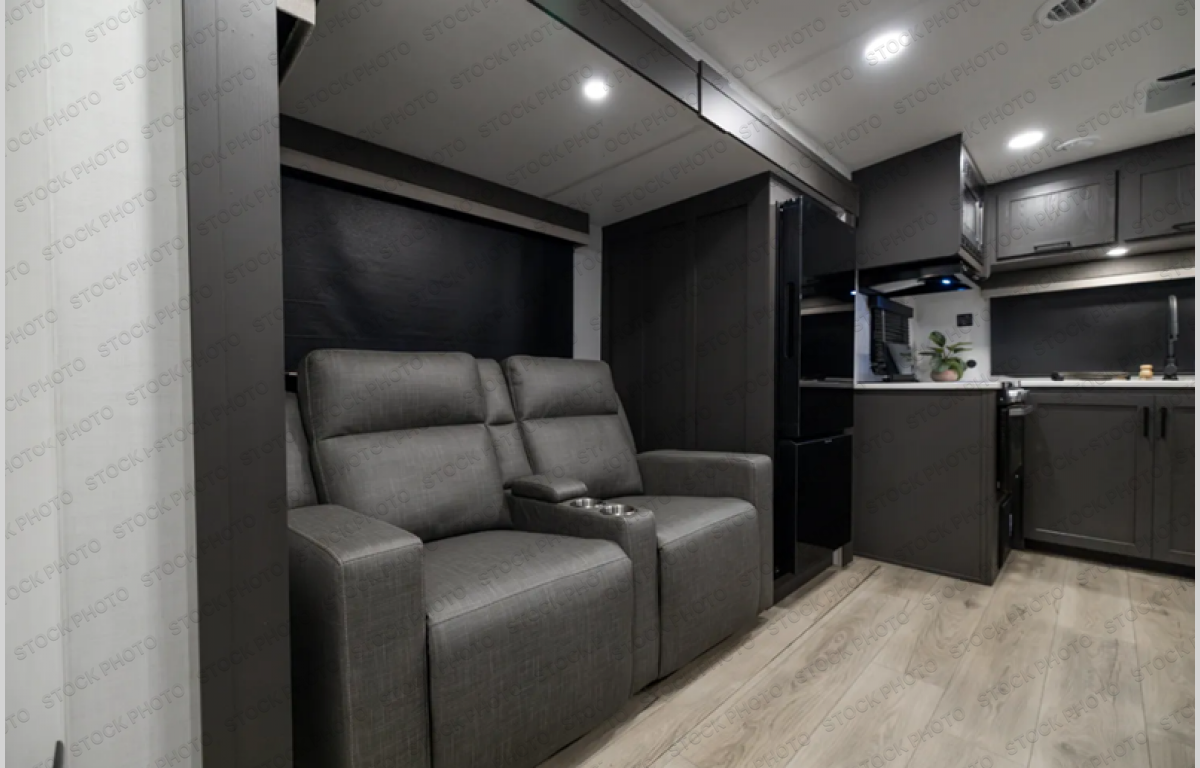Wherever you decide to camp, you can be sure to enjoy your time in this double slide out trailer! The chef of your group will love having a front kitchen with generous counter space plus ample over-head cabinet space. There is also a 21' awning outdoors, along with Solid Entry Steps, and dual entry doors! A 39" booth dinette provides a place to dine or play a card game after dinner, and the theater seat across from the TV is perfect for movie night. The walk-thru bath leads to the rear master bedroom where you'll find a queen bed, a large wardrobe, and the second entrance to the trailer for easy access to both the wardrobe and the bathroom nearby!