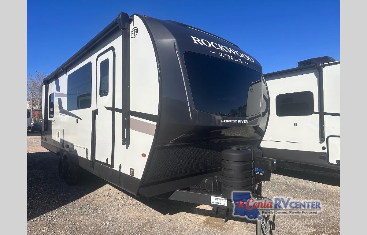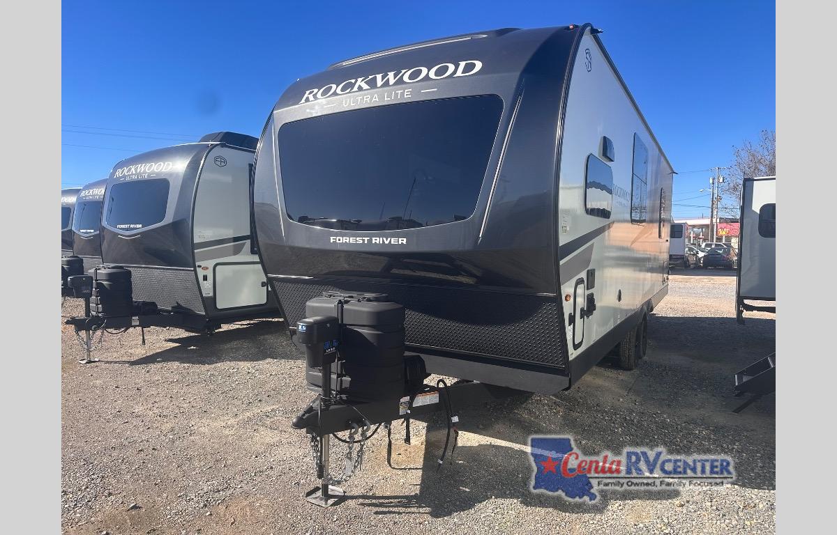 Each Rockwood Ultra Lite travel trailer by Forest River includes superior construction with a high gloss fiberglass cap, aluminum cage construction, and a power awning with LED lighting for a cozy and functional outdoor space. The torsion axle, power tongue jack will make towing smooth and hassle-free, along with the nitrogen filled, Goodyear Endurance tires and the tire pressure monitor system. Interior comforts include kitchen sink with high rise faucet, hidden hinge cabinet doors, and roller shades to name a few. Choose a Rockwood Ultra Lite travel trailer today!