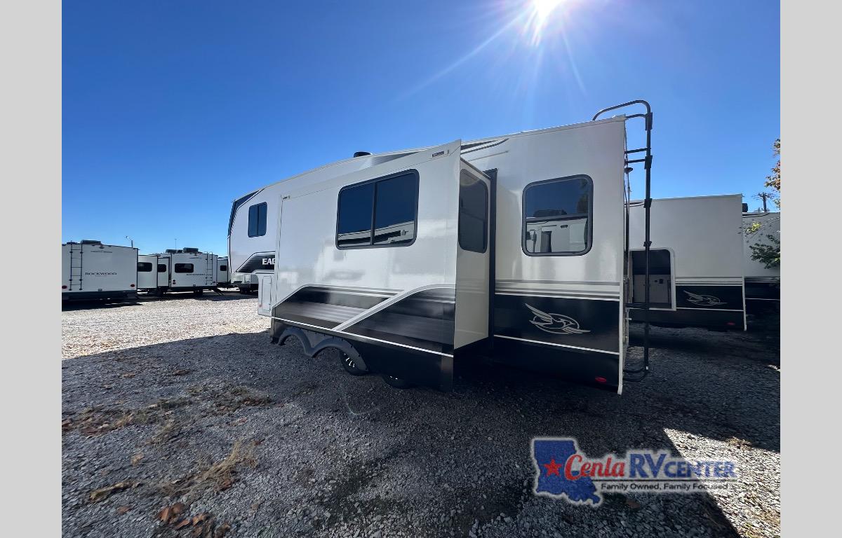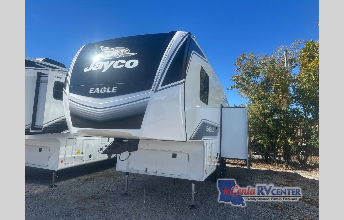 With any Eagle HT fifth wheel or travel trailer by Jayco you will enjoy a smooth drive thanks to the 4 Star Handling Package and MORryde CRE-3000 rubberized suspension. The Customer Value Package includes amenities that are sure to make camping easier than ever, like the 60K on-demand water heater, Keyed-Alike lock system, 15,000 BTU "Whisper Quiet" A/C, and more. Handcrafted door/drawer fronts will make your space feel more like home, along with residential vinyl flooring throughout, GE appliances, and blackout roller shades with reflective side throughout to keep the sun out when you want to sleep in. Each model also includes a NuVo H2O water treatment system with filters included, interior and exterior "Blue Sync" audio connect with MB Quart Sound for your TV and phone, and 100% no floor vents for added comfort and convenience!