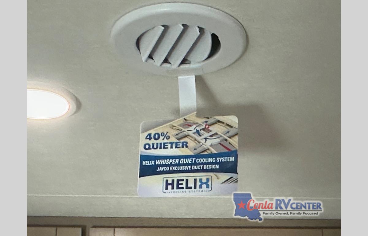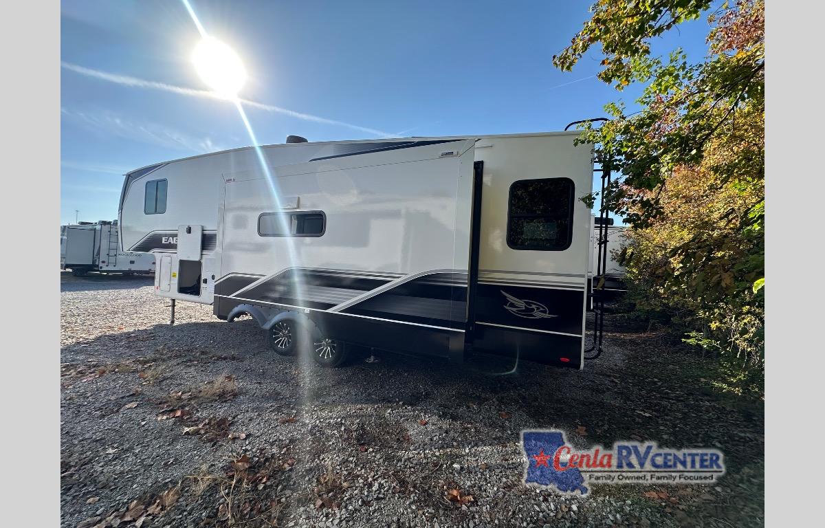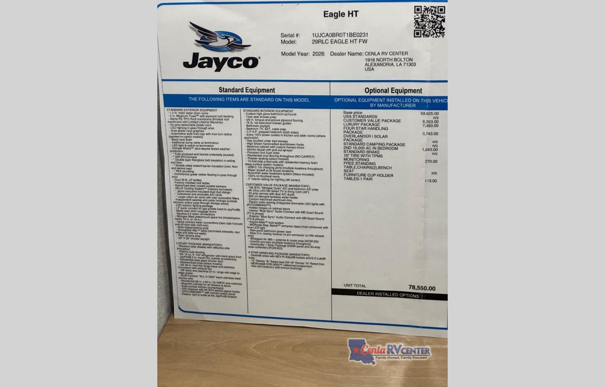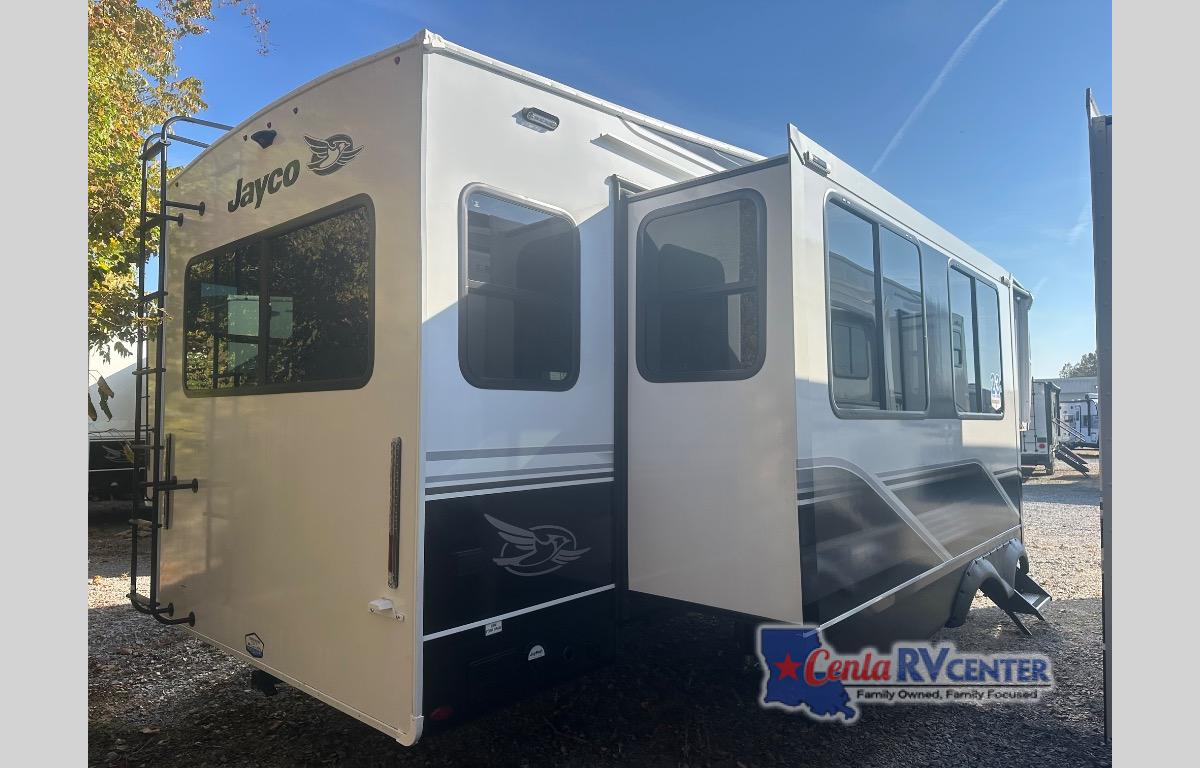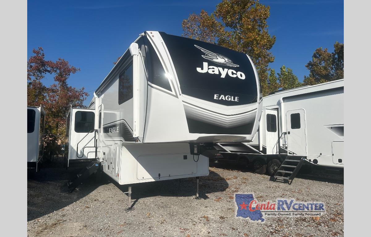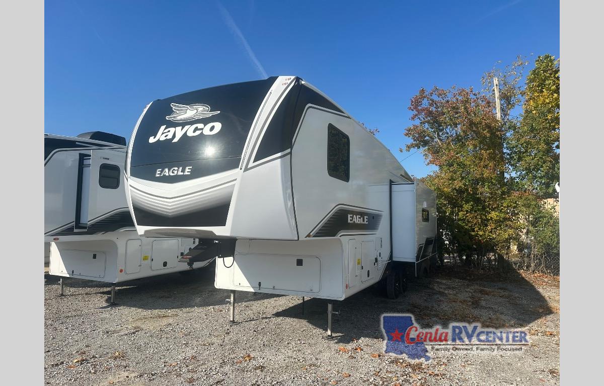 With any Eagle HT fifth wheel or travel trailer by Jayco you will enjoy a smooth drive thanks to the 4 Star Handling Package and MORryde CRE-3000 rubberized suspension. The Customer Value Package includes amenities that are sure to make camping easier than ever, like the 60K on-demand water heater, Keyed-Alike lock system, 15,000 BTU "Whisper Quiet" A/C, and more. Handcrafted door/drawer fronts will make your space feel more like home, along with residential vinyl flooring throughout, GE appliances, and blackout roller shades with reflective side throughout to keep the sun out when you want to sleep in. Each model also includes a NuVo H2O water treatment system with filters included, interior and exterior "Blue Sync" audio connect with MB Quart Sound for your TV and phone, and 100% no floor vents for added comfort and convenience!