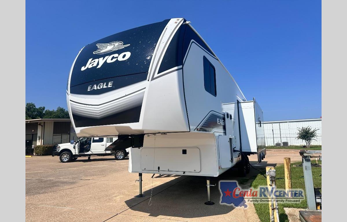 With any Eagle HT fifth wheel or travel trailer by Jayco you will enjoy a smooth drive thanks to the 4 Star Handling Package and MORryde CRE-3000 rubberized suspension. The Customer Value Package includes amenities that are sure to make camping easier than ever, like the 60K on-demand water heater, Keyed-Alike lock system, 15,000 BTU "Whisper Quiet" A/C, and more. Handcrafted door/drawer fronts will make your space feel more like home, along with residential vinyl flooring throughout, GE appliances, and blackout roller shades with reflective side throughout to keep the sun out when you want to sleep in. Each model also includes a NuVo H2O water treatment system with filters included, interior and exterior "Blue Sync" audio connect with MB Quart Sound for your TV and phone, and 100% no floor vents for added comfort and convenience!