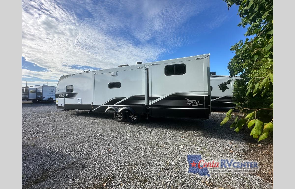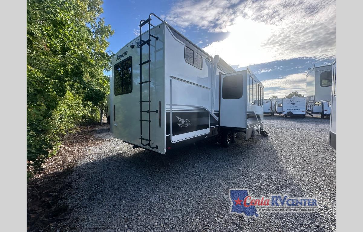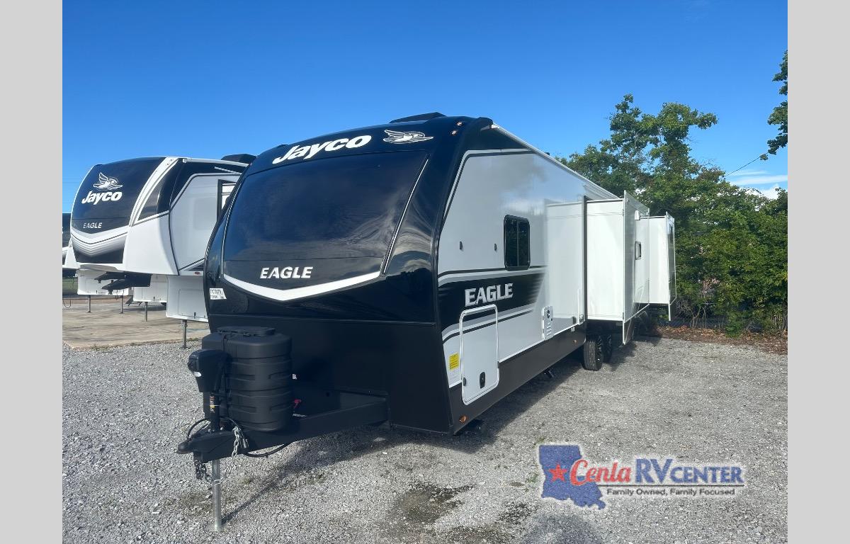 With any Eagle HT fifth wheel or travel trailer by Jayco you will enjoy a smooth drive thanks to the 4 Star Handling Package and MORryde CRE-3000 rubberized suspension. The Customer Value Package includes amenities that are sure to make camping easier than ever, like the 60K on-demand water heater, Keyed-Alike lock system, 15,000 BTU "Whisper Quiet" A/C, and more. Handcrafted door/drawer fronts will make your space feel more like home, along with residential vinyl flooring throughout, GE appliances, and blackout roller shades with reflective side throughout to keep the sun out when you want to sleep in. Each model also includes a NuVo H2O water treatment system with filters included, interior and exterior "Blue Sync" audio connect with MB Quart Sound for your TV and phone, and 100% no floor vents for added comfort and convenience!