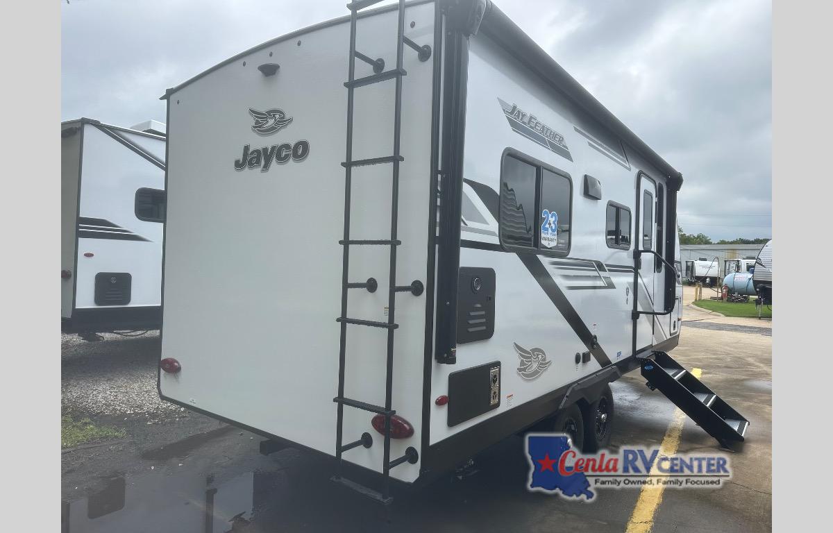 With any Jay Feather travel trailer by Jayco, you will enjoy lightweight towing, convenient exterior amenities, and at-home comforts inside! The Overlander 1 Solar Package included within the Jay Sport Package comes with a 200W solar panel and a 30-amp digital controller so you can enjoy some off-grid camping. There is also a modern graphics package with a dual-colored sidewall, LCI Solid Step fold-down aluminum tread steps on the main entry door, and Climate Shield 0 -100° F tested weather insulation package that will allow you to camp in all sorts of climates. The Customer Value Package will make time outdoors easier than ever with a power tongue jack and a Rock Solid stabilizer system, plus American-made nitro-filled Goodyear tires with self-adjusting electric brakes. More exterior features include a Keyed-Alike locking system, marine grade exterior speakers, a Magnum Truss roof system, and the list goes on! And we haven't even touched on the interior comforts, like the residential style seamless countertops and vinyl flooring throughout, decorative backsplash, handcrafted hardwood door/drawer fronts, and multiple USB charging ports to keep you going!