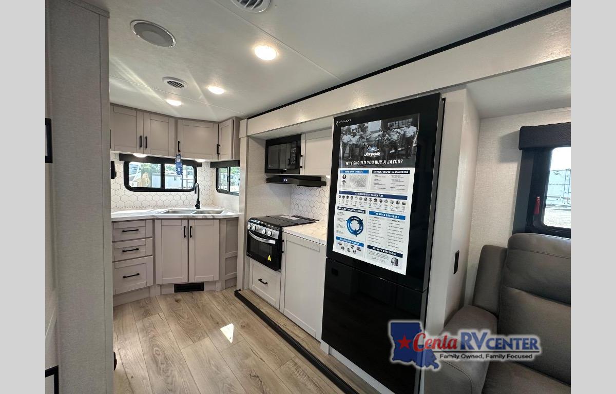 With any Jay Feather travel trailer by Jayco, you will enjoy lightweight towing, convenient exterior amenities, and at-home comforts inside! The Overlander 1 Solar Package included within the Jay Sport Package comes with a 200W solar panel and a 30-amp digital controller so you can enjoy some off-grid camping. There is also a modern graphics package with a dual-colored sidewall, LCI Solid Step fold-down aluminum tread steps on the main entry door, and Climate Shield 0 -100° F tested weather insulation package that will allow you to camp in all sorts of climates. The Customer Value Package will make time outdoors easier than ever with a power tongue jack and a Rock Solid stabilizer system, plus American-made nitro-filled Goodyear tires with self-adjusting electric brakes. More exterior features include a Keyed-Alike locking system, marine grade exterior speakers, a Magnum Truss roof system, and the list goes on! And we haven't even touched on the interior comforts, like the residential style seamless countertops and vinyl flooring throughout, decorative backsplash, handcrafted hardwood door/drawer fronts, and multiple USB charging ports to keep you going!