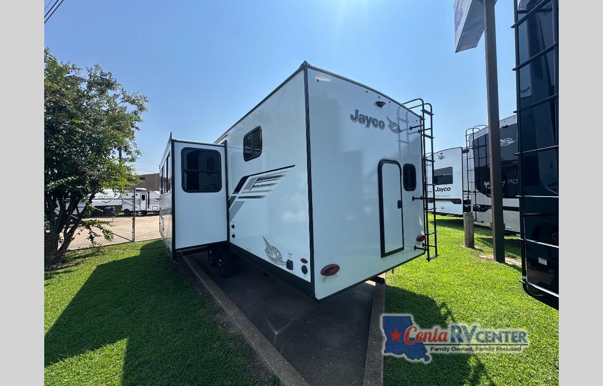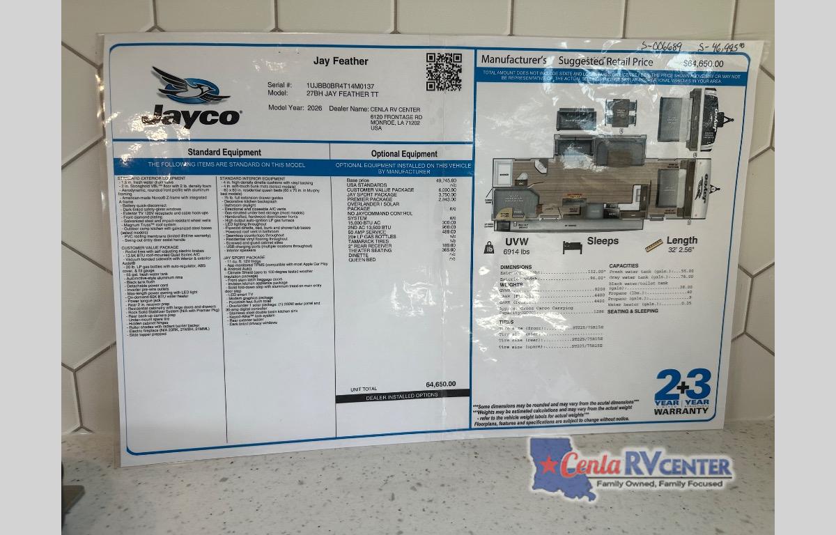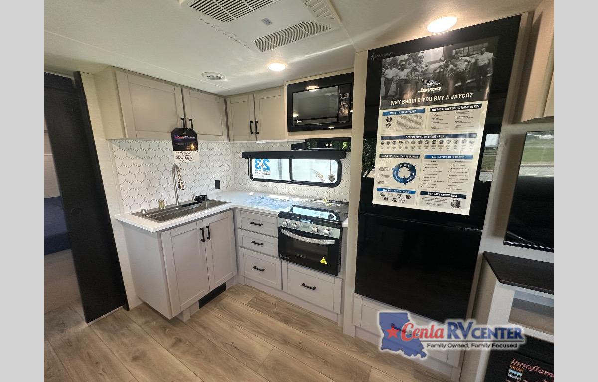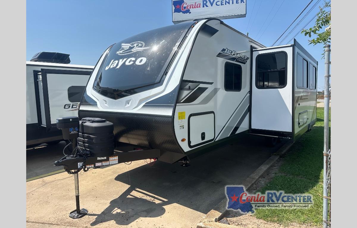 With any Jay Feather travel trailer by Jayco, you will enjoy lightweight towing, convenient exterior amenities, and at-home comforts inside! The Overlander 1 Solar Package included within the Jay Sport Package comes with a 200W solar panel and a 30-amp digital controller so you can enjoy some off-grid camping. There is also a modern graphics package with a dual-colored sidewall, LCI Solid Step fold-down aluminum tread steps on the main entry door, and Climate Shield 0 -100° F tested weather insulation package that will allow you to camp in all sorts of climates. The Customer Value Package will make time outdoors easier than ever with a power tongue jack and a Rock Solid stabilizer system, plus American-made nitro-filled Goodyear tires with self-adjusting electric brakes. More exterior features include a Keyed-Alike locking system, marine grade exterior speakers, a Magnum Truss roof system, and the list goes on! And we haven't even touched on the interior comforts, like the residential style seamless countertops and vinyl flooring throughout, decorative backsplash, handcrafted hardwood door/drawer fronts, and multiple USB charging ports to keep you going!