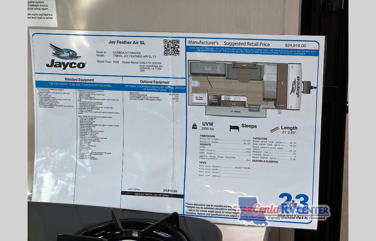 New 2026 Jayco Jay Feather Air SL 17BHSL