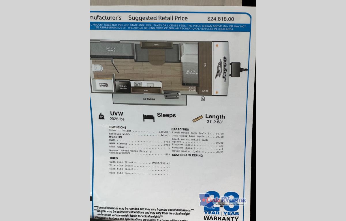 Cenla Camping Center is not responsible for any misprints, typos, or errors found in our website pages. Any price listed excludes sales tax, registration tags, and delivery fees. Manufacturer-provided pictures, specifications and features may be used as needed. Inventory shown may be only a partial listing of the entire inventory. Please contact us at 318-445-6981 for availability as our inventory changes rapidly. All calculated payments are an estimate only and do not constitute a commitment that financing or a specific interest rate or term is available.
