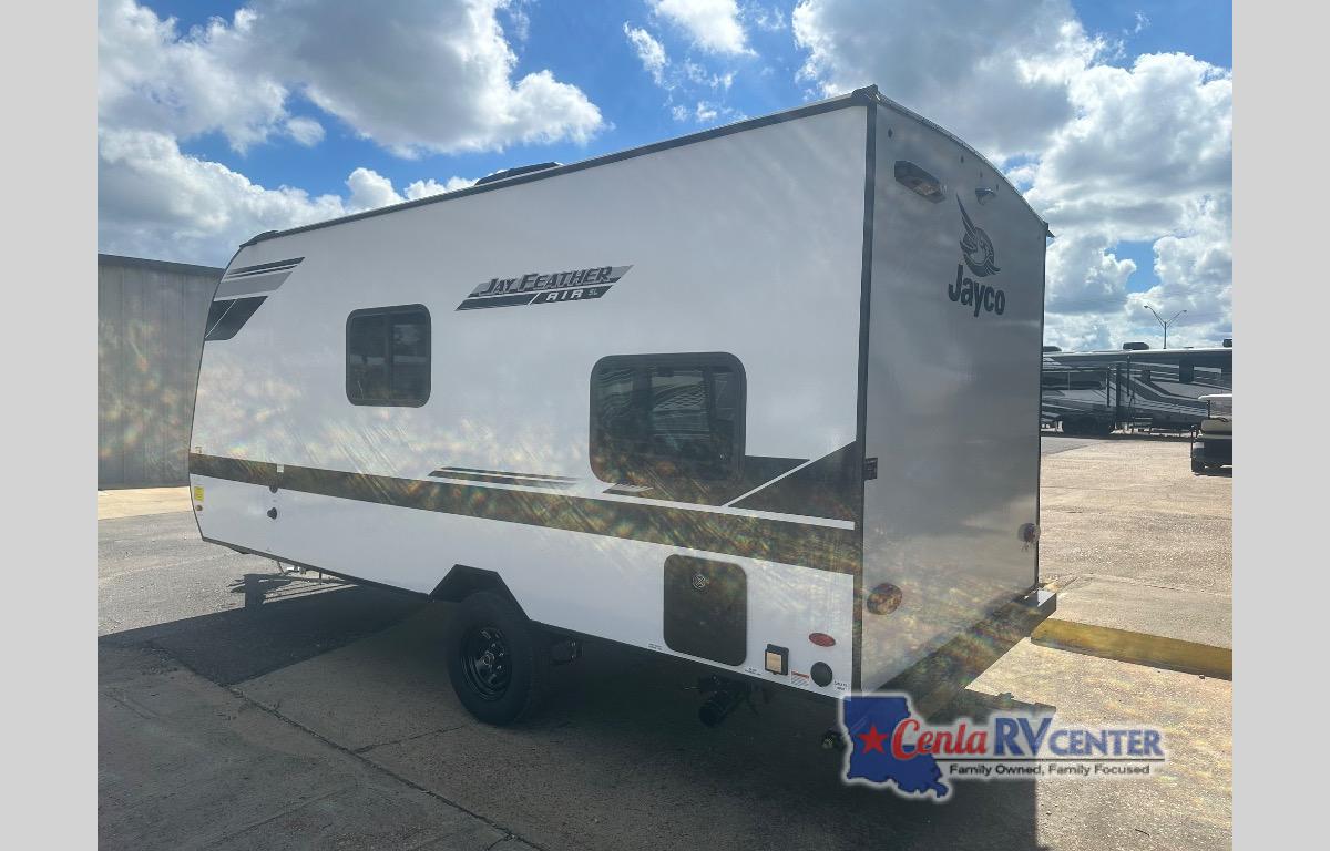 The Jay Feather Air SL travel trailer by Jayco is affordable, convenient, and lightweight for an easier tow! A Magnum Truss roof system and fully integrated A-frame provide a strong foundation to the trailer, plus there are galvanized-steel, impact resistant wheel wells for added protection. Some of the exterior conveniences you'll find include a front tongue jack and stabilizer jacks, roof mount solar prep, an exterior porch light, and G20 dark tinted privacy windows. Head inside to enjoy solid hardwood cabinet doors, residential-style kitchen countertops, a marine-grade toilet with foot flush, and vinyl flooring throughout that will be easy to keep clean. This super lite travel trailer is the perfect choice for rookie RVers and seasoned campers alike!