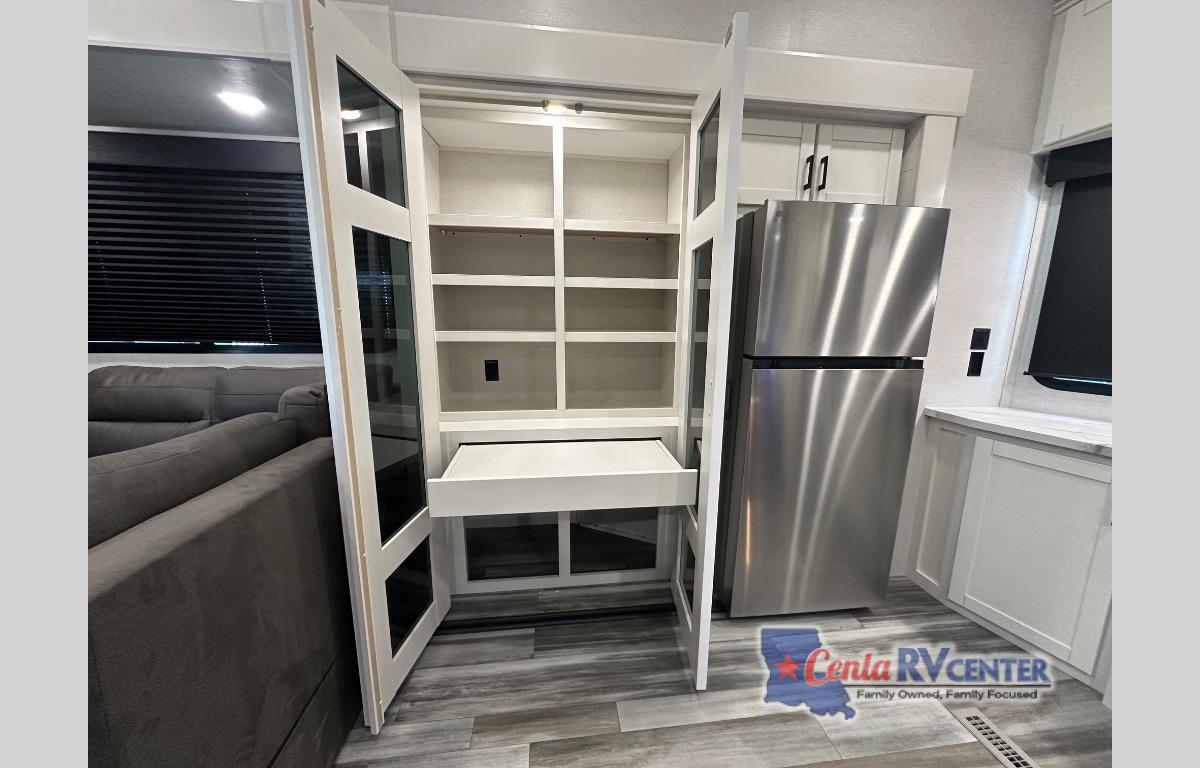 It won't be hard to find comfort in this spacious trailer for eight! The front kitchen features ample counter space to prep meals plus a residential refrigerator and double door pantry for food storage! You can dine at the table and chairs with a bench, then head to the living area to relax on the tri-fold L-lounge with a recliner on rollers. Across from the sliding patio doors, you'll find the spacious full bath, and the steps next to the bath lead to the double loft areas. The little ones will have three bunk mats to sleep on, two loft desks, shelves, and TV prep for added convenience! And don't overlook the spacious rear private bedroom with a queen bed slide, storage space, plus washer and dryer prep if you want the option to make laundry day easier!
