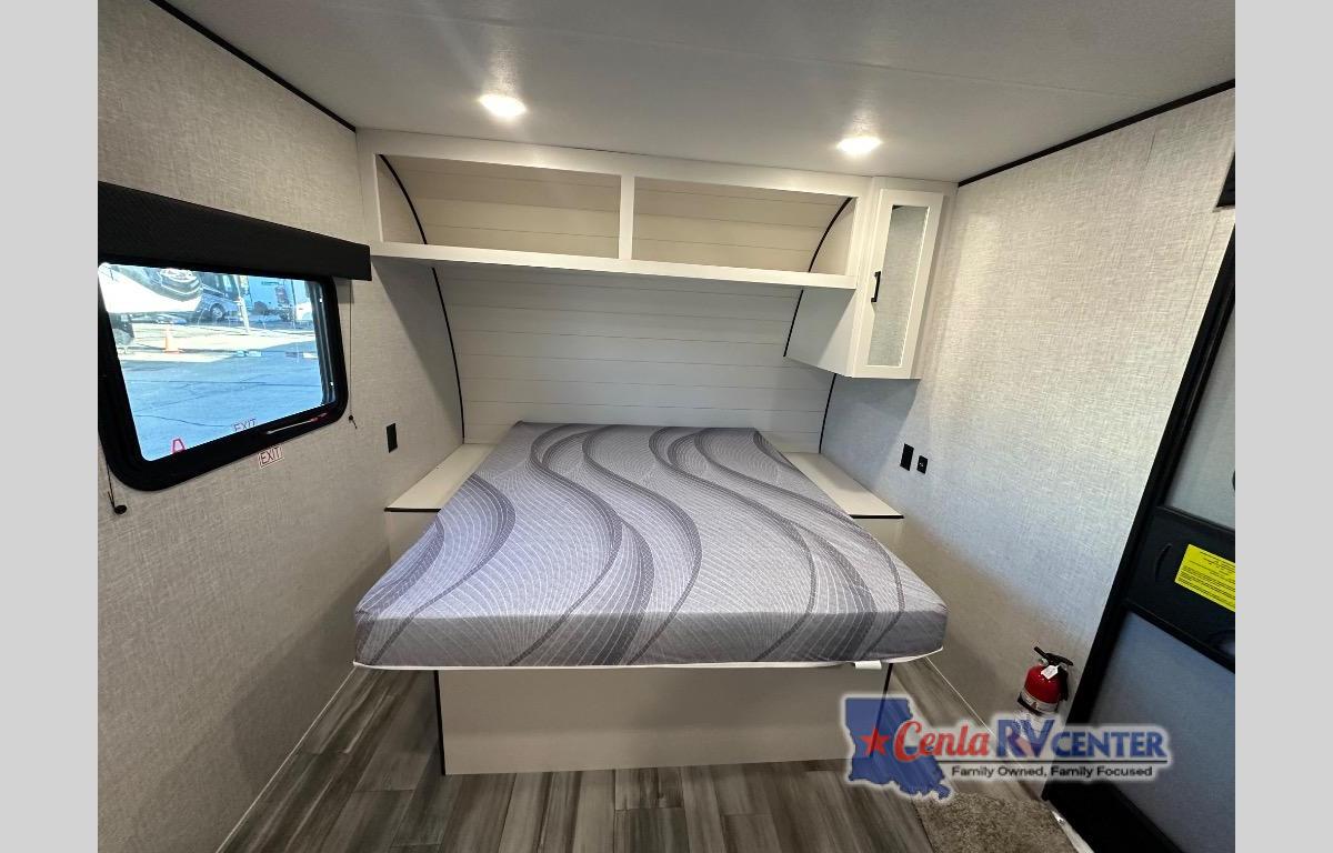 This travel trailer includes everything you need for fun trips at the lake. When you arrive at the campground, you can unload the exterior storage, then put out the 10' power awning. The booth dinette inside will provide a place to dine together, and the full rear bath with a shower will make it easier than ever to clean up after a day of hiking. A front RV queen bed will provide a great night's rest, and the overhead shelf will be perfect for books or personal belongings.