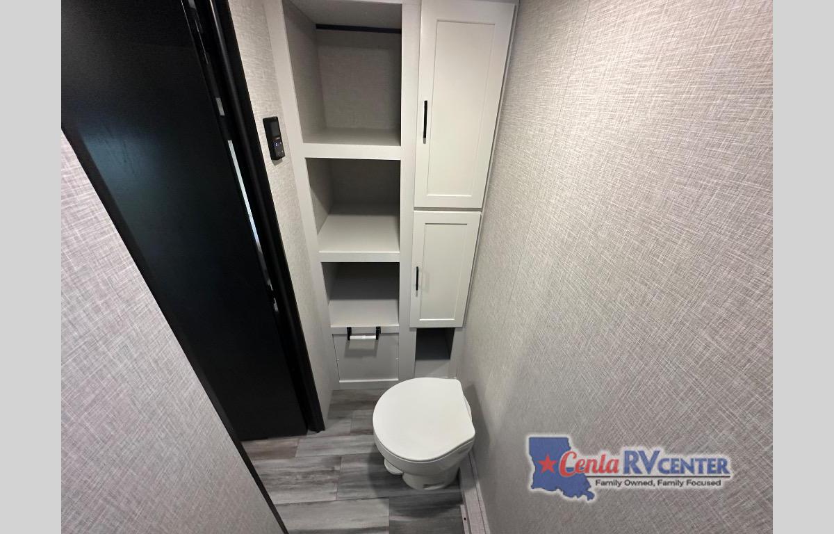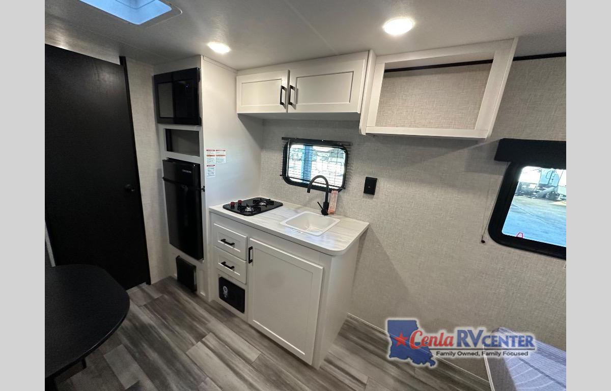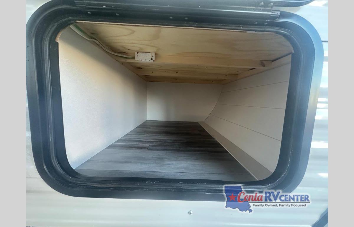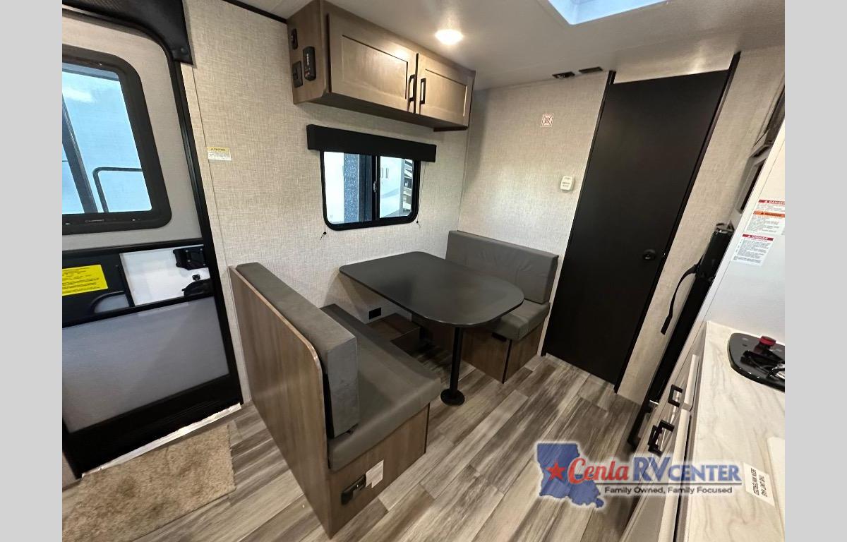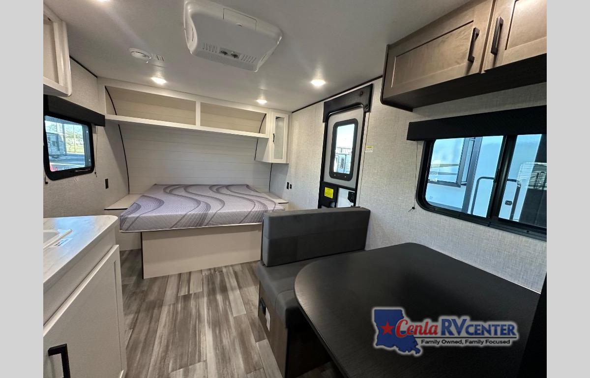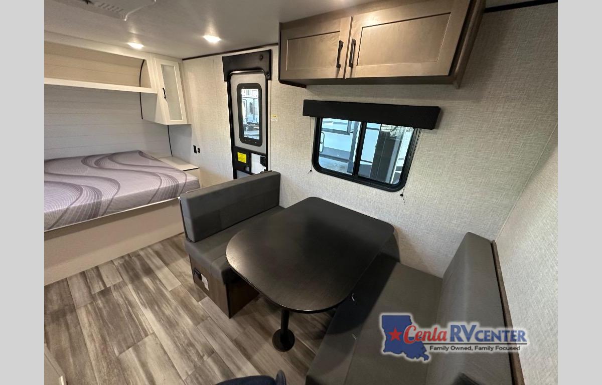 This travel trailer includes everything you need for fun trips at the lake. When you arrive at the campground, you can unload the exterior storage, then put out the 10' power awning. The booth dinette inside will provide a place to dine together, and the full rear bath with a shower will make it easier than ever to clean up after a day of hiking. A front RV queen bed will provide a great night's rest, and the overhead shelf will be perfect for books or personal belongings.