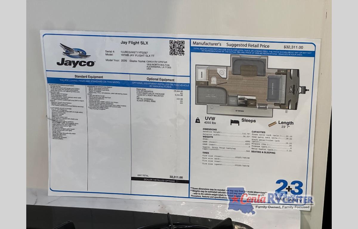 New 2026 Jayco Jay Flight SLX 197MBW