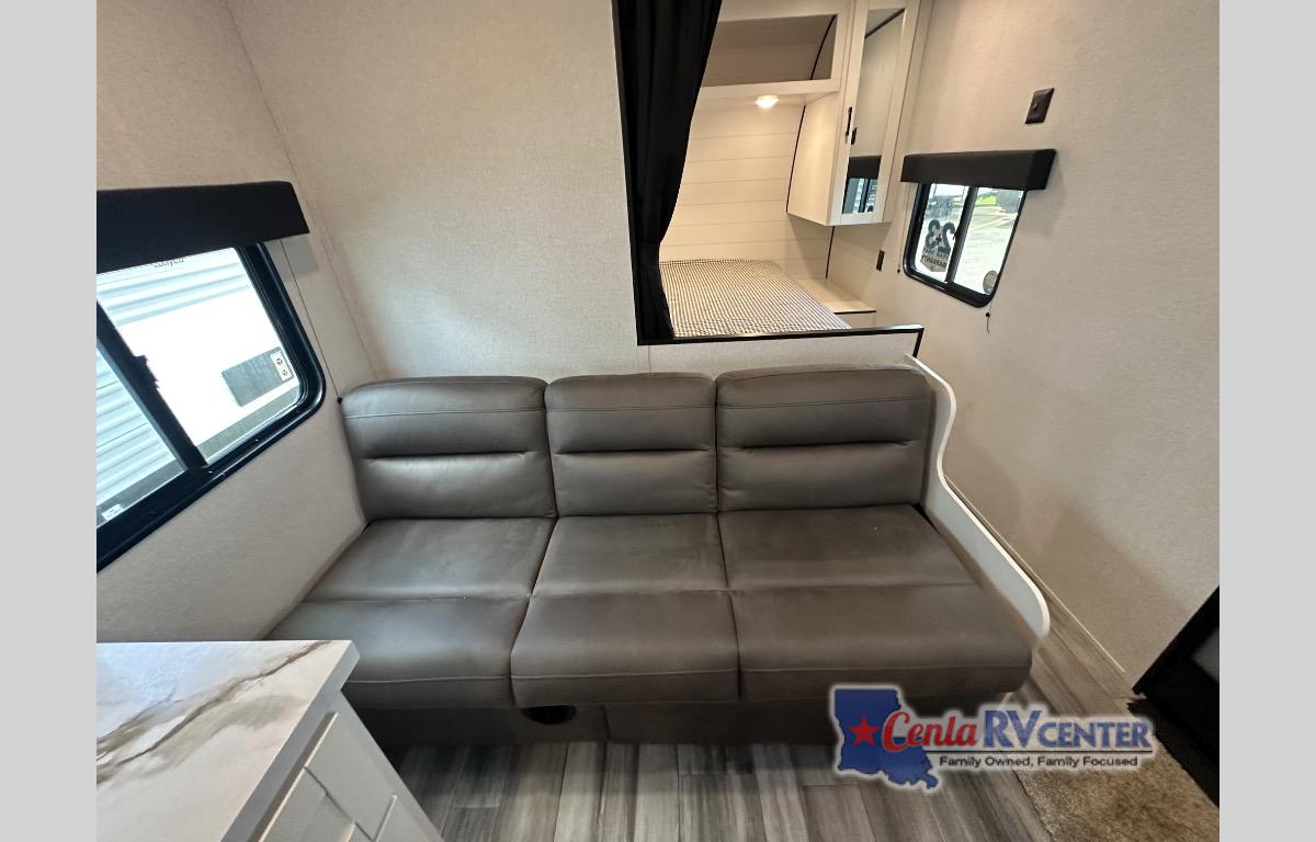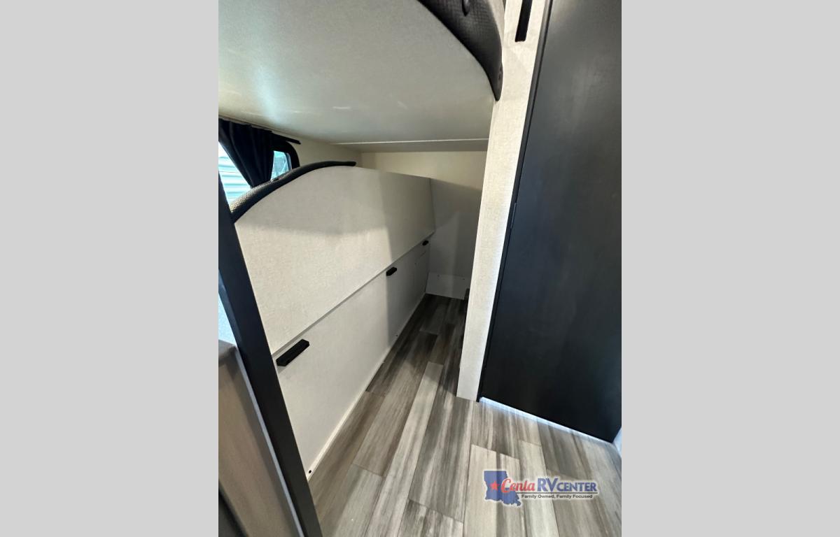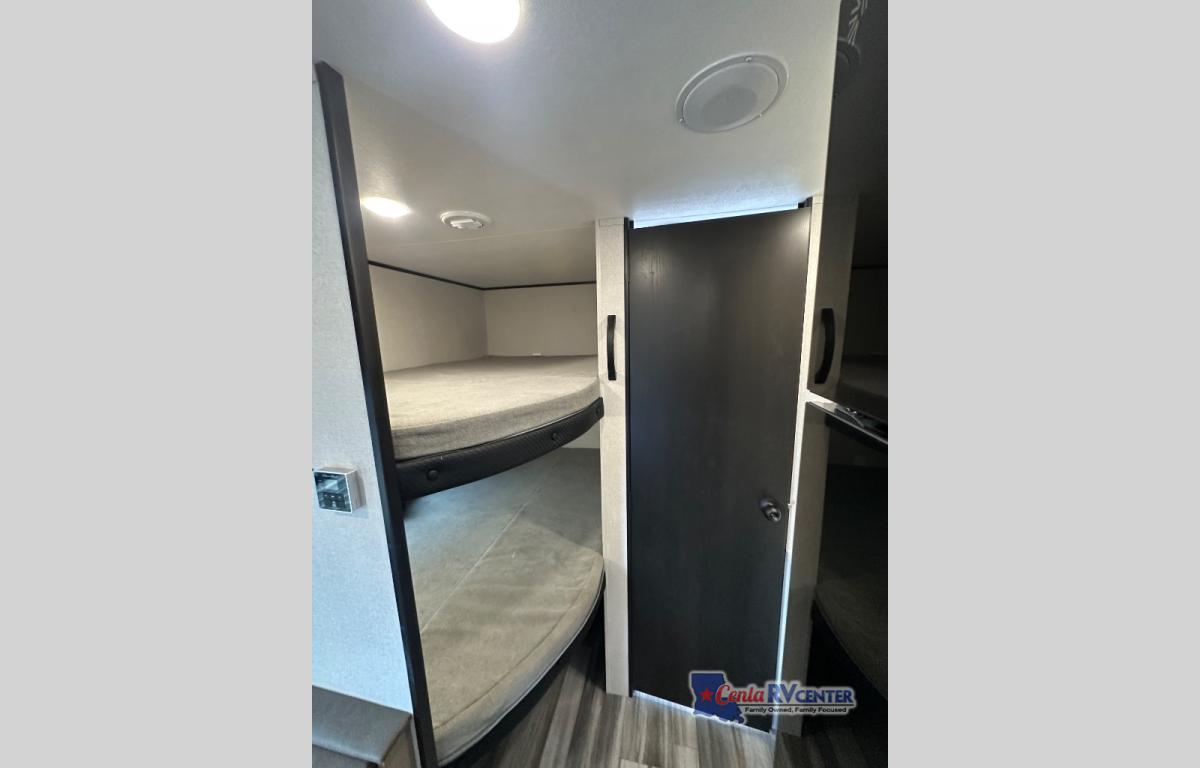 You can comfortably sleep eight to ten people in this trailer thanks to the double-size bunks, the RV queen bed in the front bedroom, plus the booth dinette and jack-knife sofa in the main living area! The chef of your crew will have a three burner cooktop and microwave oven to prepare meals, and everyone can store their favorite drinks in the 8 cu. ft. 12V refrigerator. The bathroom includes a shower and a toilet, with the sink just outside of this room so others can brush their teeth if one is taking a shower before bed. The outside storage will let you bring along fishing poles and the 16' power awning with LED lights will create a nice place to gather in the evenings!