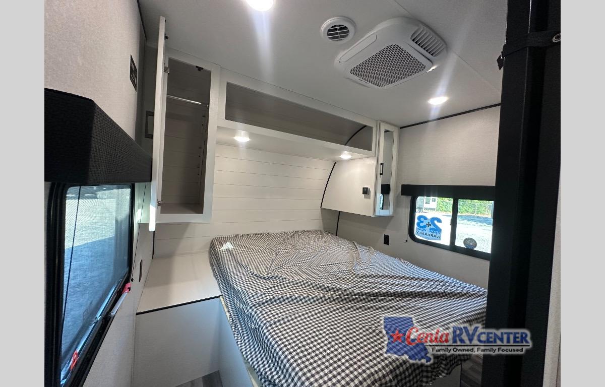 Camping trips just got a whole lot better in this spacious travel trailer for four! You'll love having a private bedroom up front with a queen bed and dual bedside wardrobes, while your guests sleep on the jack-knife sofa and booth dinette within the large slide out. There is a fully-equipped kitchen to make meals each day, plus a hidden pantry with shelves for games and a second pantry to keep snacks stocked. The full rear bath is both spacious and convenient since it's tuck away in the back. Start camping today!