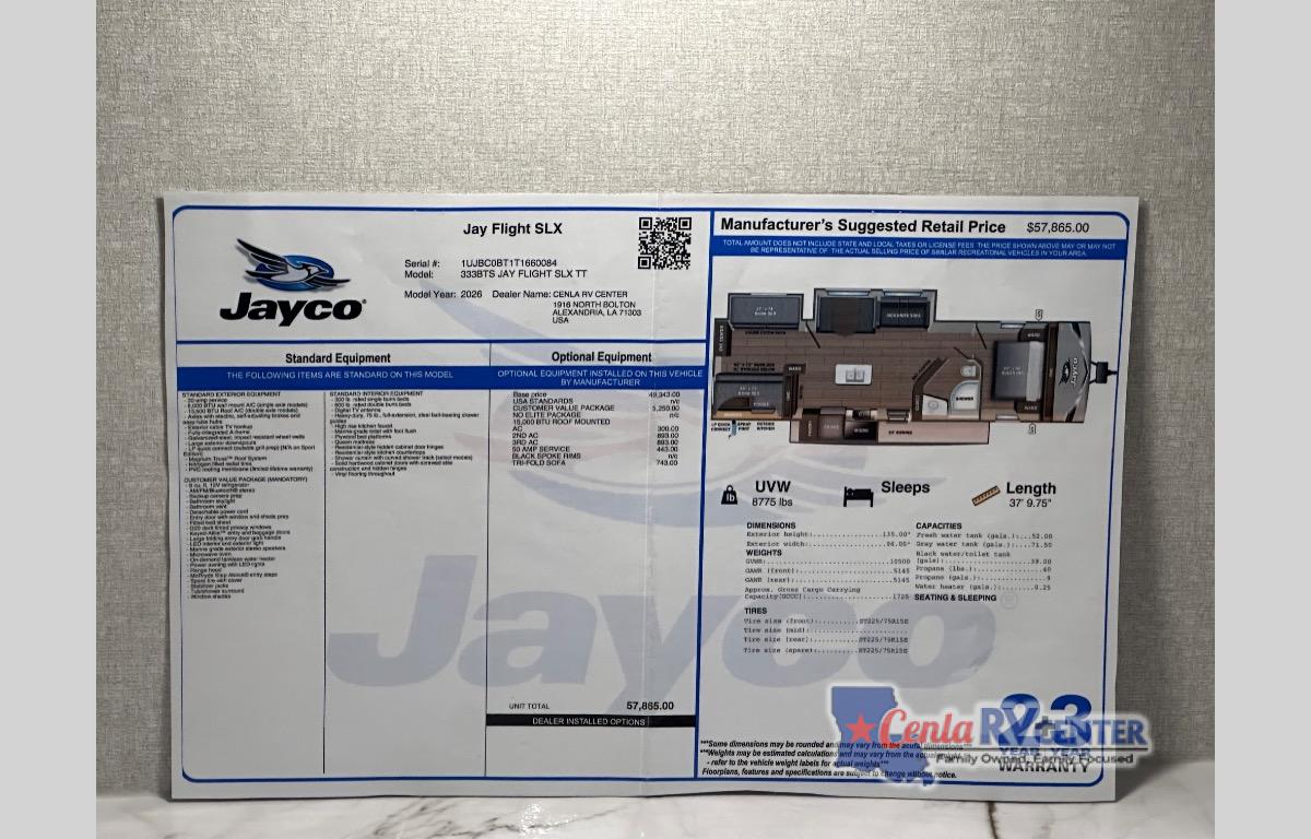 Cenla Camping Center is not responsible for any misprints, typos, or errors found in our website pages. Any price listed excludes sales tax, registration tags, and delivery fees. Manufacturer-provided pictures, specifications and features may be used as needed. Inventory shown may be only a partial listing of the entire inventory. Please contact us at 318-445-6981 for availability as our inventory changes rapidly. All calculated payments are an estimate only and do not constitute a commitment that financing or a specific interest rate or term is available.