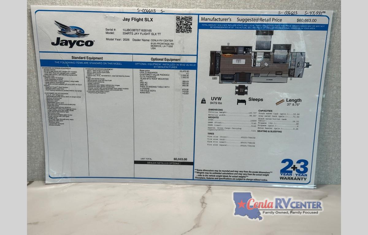 Jayco Jay Flight SLX travel trailer 334RTS highlights: