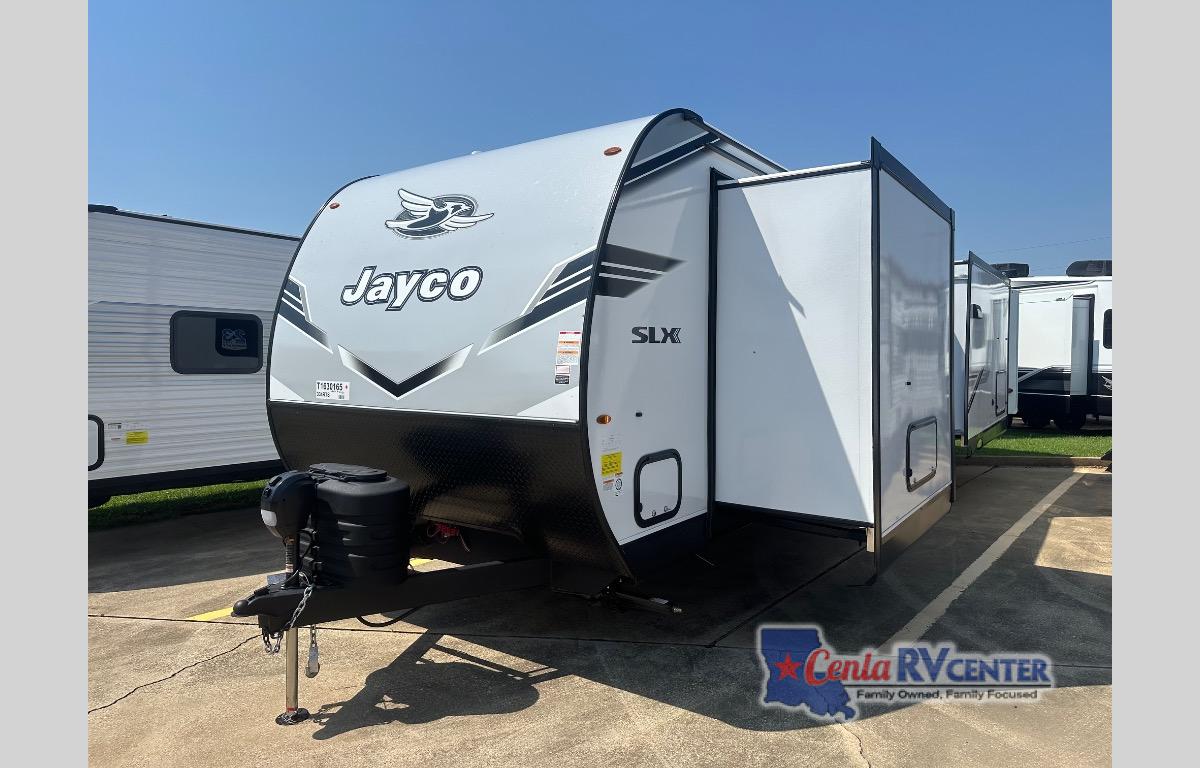 The Jayco Jay Flight SLX travel trailer is quite easy to own because it is lightweight for an easier towing experience. Built on a fully integrated A-frame with galvanized-steel, impact-resistant wheel wells, the Jay Flight SLX has quality at its very foundation. That quality continues on to the electric self-adjusting brakes, easy-lube hubs, Magnum Truss roof system, and LP quick connect. Some of what the mandatory Customer Value Package includes is backup camera prep, Keyed-Alike entry and baggage doors, and an on-demand tankless water heater.