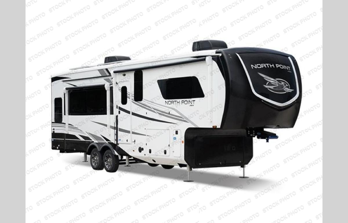 With any North Point fifth wheel by Jayco you begin with a strong foundation with a custom frame, designed and sized specifically to best support each unit. Constructed with Stronghold VBL™ aluminum framed, vacuum bond laminated walls and the Magnum Truss™ XL6™ roof system with an Alpha roof membrane system, which is the strongest tested roof in the industry. The 5-Star Handling package is included with Uniroyal tires, a MORryde rubber pin box, Dexter axles with Nev-R-Adjust brakes, MORryde CRE-3000 rubberized suspension and wet bolt fasteners and bronze bushings. The interior has handcrafted hardwood glazed doors and drawers, vinyl flooring throughout, an integrated under-mount sink in the main bathroom, plus so much more you just have to see one to believe it all!
