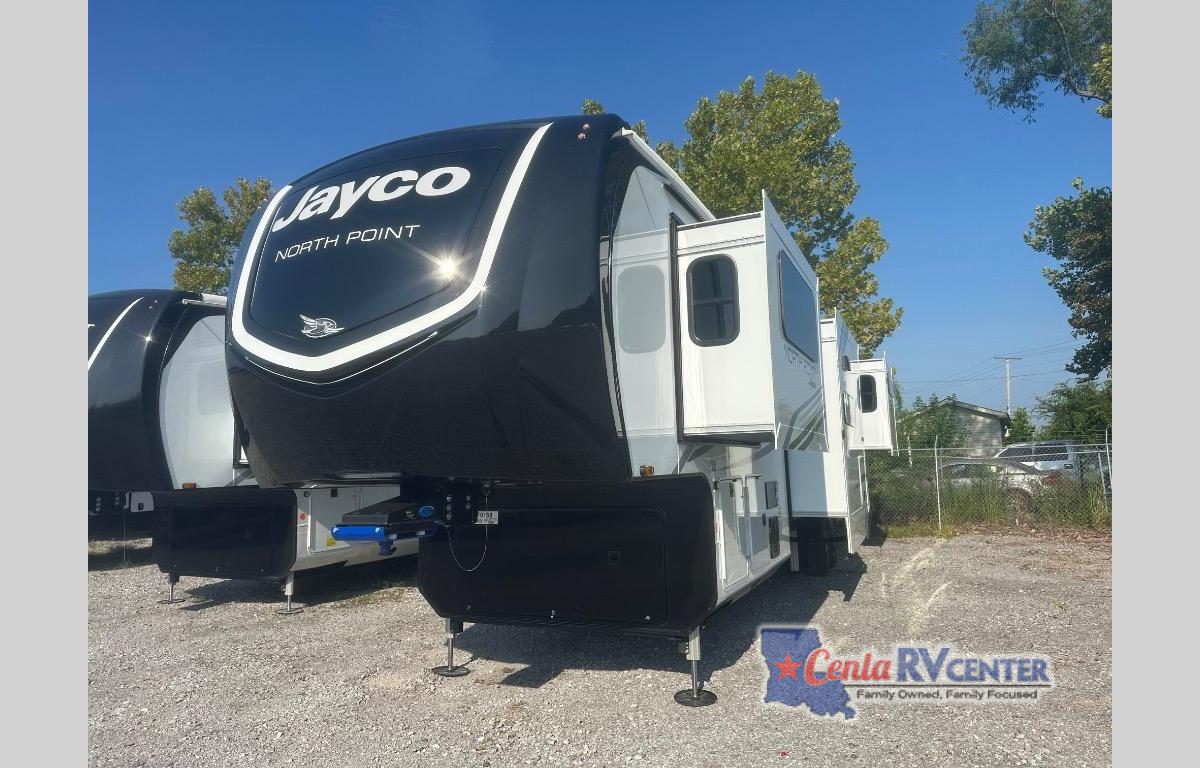 With any North Point fifth wheel by Jayco you begin with a strong foundation with a custom frame, designed and sized specifically to best support each unit. Constructed with Stronghold VBL™ aluminum framed, vacuum bond laminated walls and the Magnum Truss™ XL6™ roof system with an Alpha roof membrane system, which is the strongest tested roof in the industry. The 5-Star Handling package is included with Uniroyal tires, a MORryde rubber pin box, Dexter axles with Nev-R-Adjust brakes, MORryde CRE-3000 rubberized suspension and wet bolt fasteners and bronze bushings. The interior has handcrafted hardwood glazed doors and drawers, vinyl flooring throughout, an integrated under-mount sink in the main bathroom, plus so much more you just have to see one to believe it all!