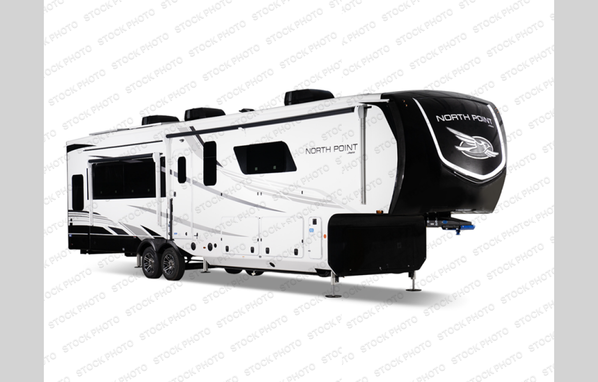 With any North Point fifth wheel by Jayco you begin with a strong foundation with a custom frame, designed and sized specifically to best support each unit. Constructed with Stronghold VBL™ aluminum framed, vacuum bond laminated walls and the Magnum Truss™ XL6™ roof system with an Alpha roof membrane system, which is the strongest tested roof in the industry. The 5-Star Handling package is included with Uniroyal tires, a MORryde rubber pin box, Dexter axles with Nev-R-Adjust brakes, MORryde CRE-3000 rubberized suspension and wet bolt fasteners and bronze bushings. The interior has handcrafted hardwood glazed doors and drawers, vinyl flooring throughout, an integrated under-mount sink in the main bathroom, plus so much more you just have to see one to believe it all!