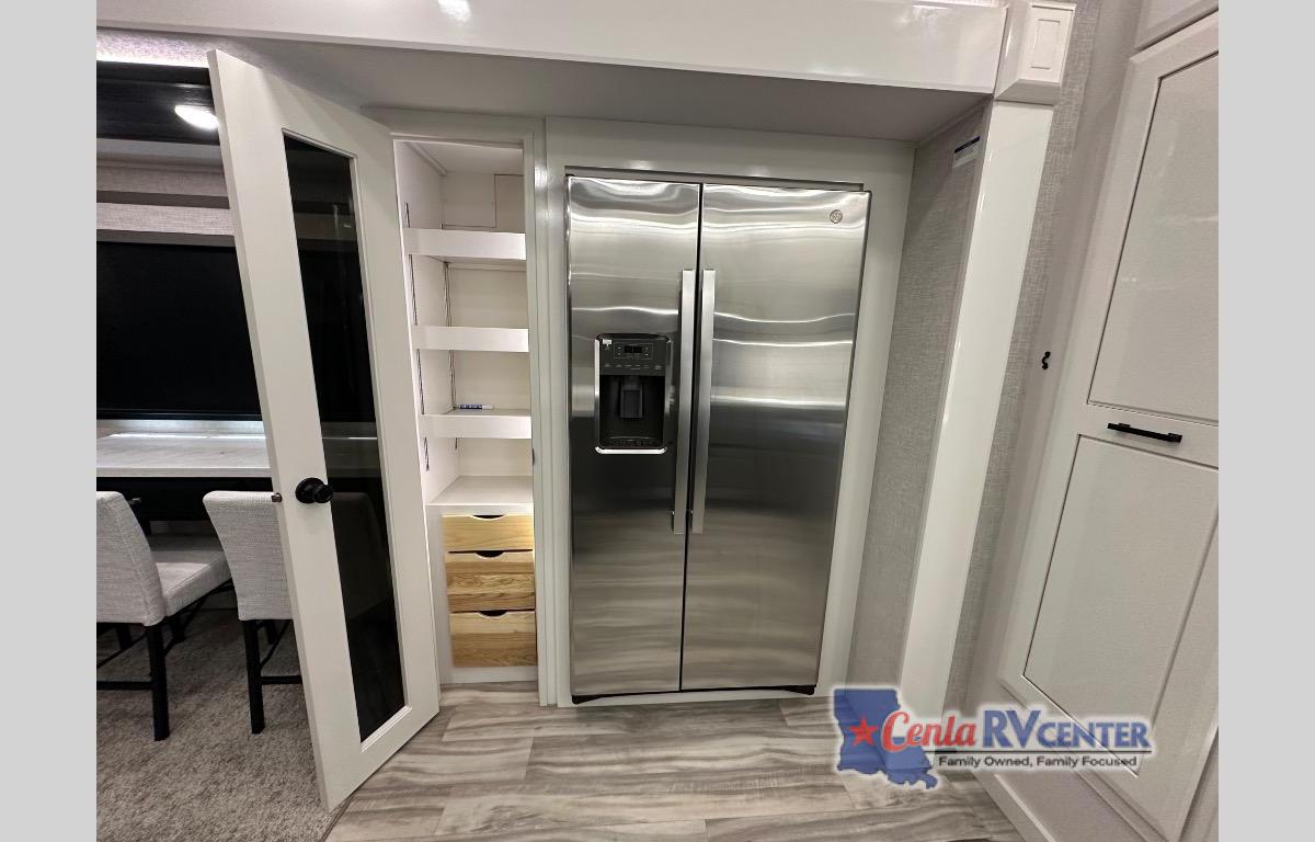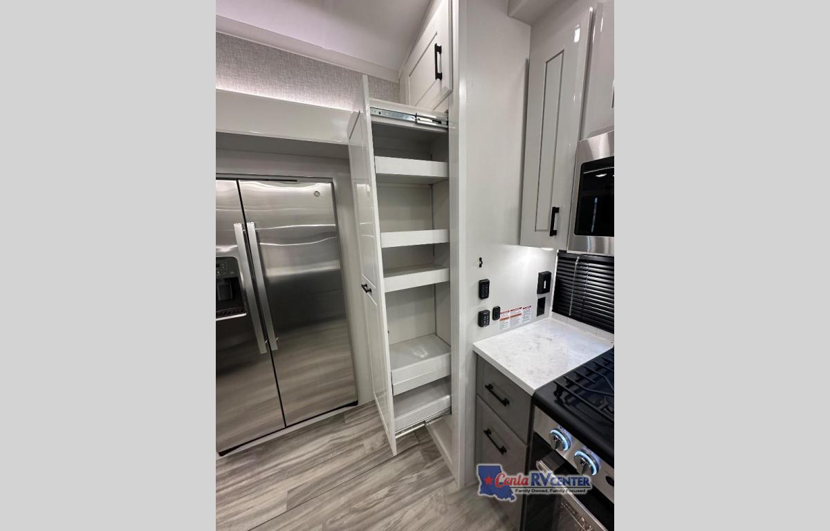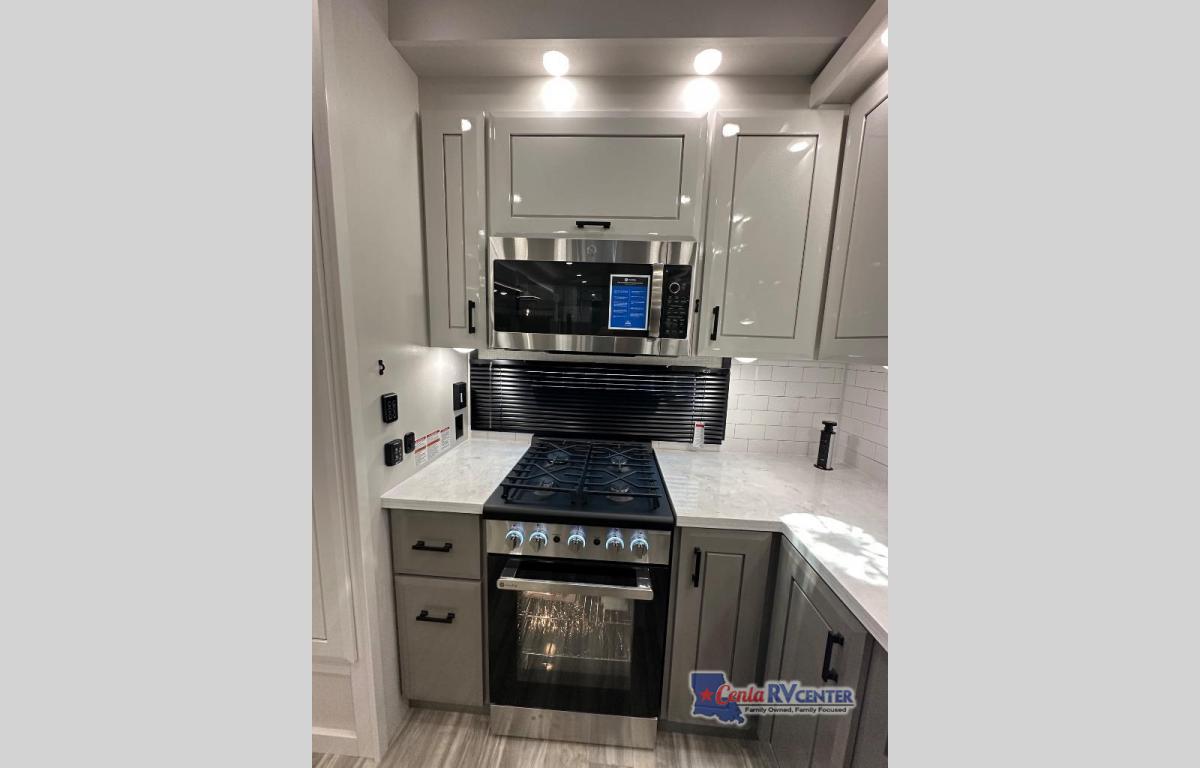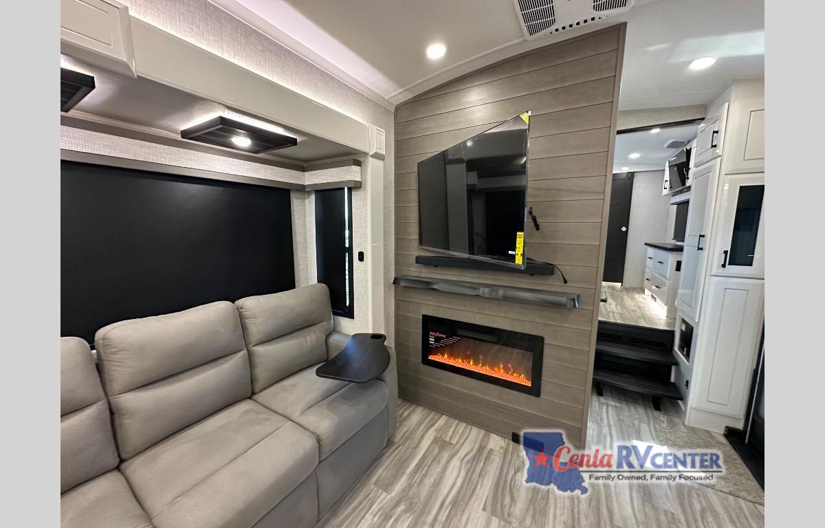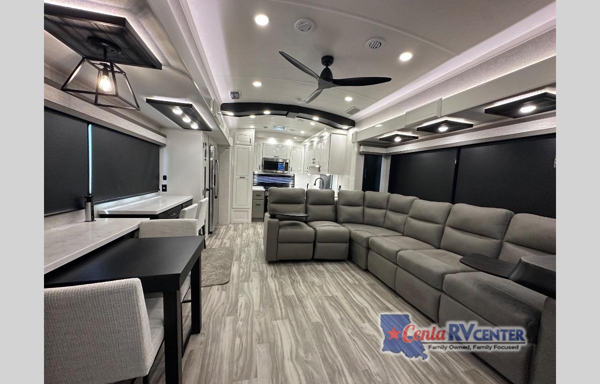 Each Pinnacle fifth wheel features Stronghold VBL lamination for the lightest, yet strongest construction in the RV industry. Add that to the Magnum Truss XL6 roof system and Climate Shield zero-degree tested weather protection and you'll be enjoying your fifth wheel even in harsh weather. Some of the exterior conveniences you will appreciate are the Keyed-Alike lock system, the fully enclosed, universal docking center, and the 6-point hydraulic auto-leveling system for quick and easy set up. The 5 Star Handling Package will make towing a fifth wheel a walk in the park, and the two Whisper Quiet A/C units will keep you comfortable during the hot summer months. Inside, you'll enjoy the residential "Do it all" sink, the solid hardwood cabinet doors, stiles, and fascia, the vinyl flooring throughout, plus many more comforts. There is even a central vacuum system, a wireless remote-control system, 12V charging station, plus many more conveniences to make each trip enjoyable.