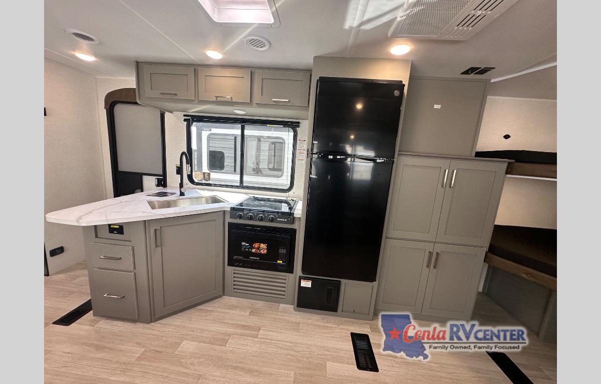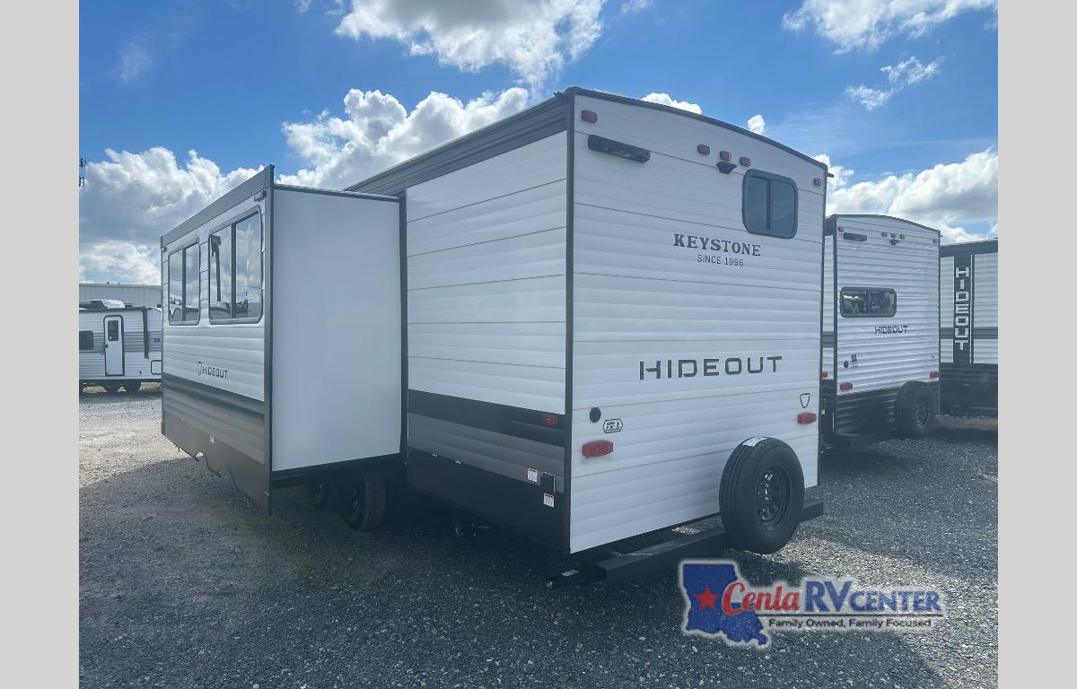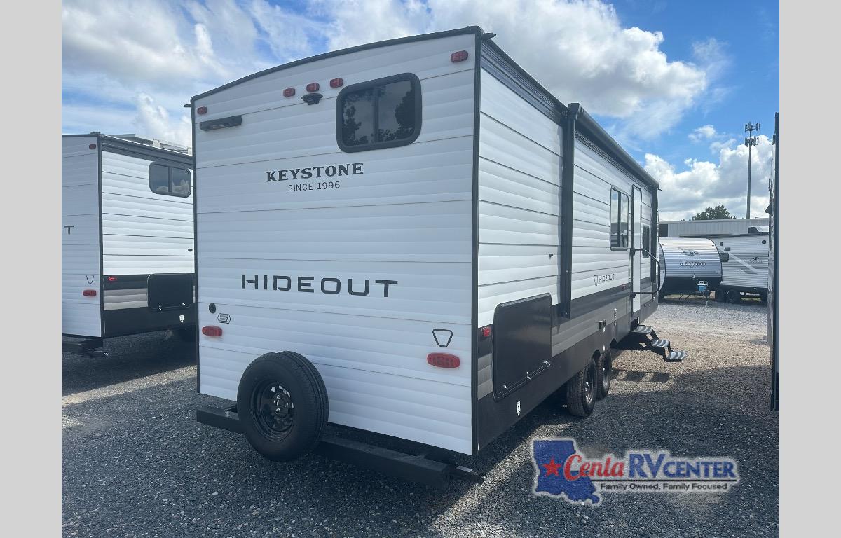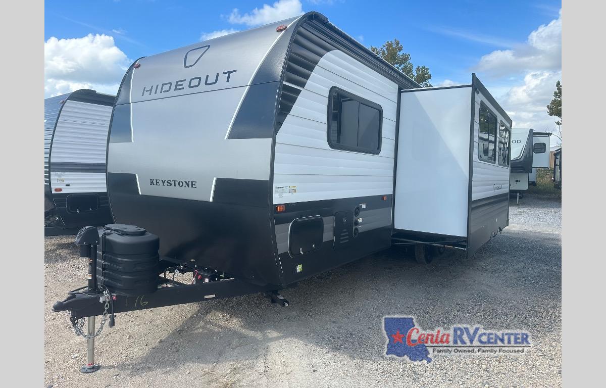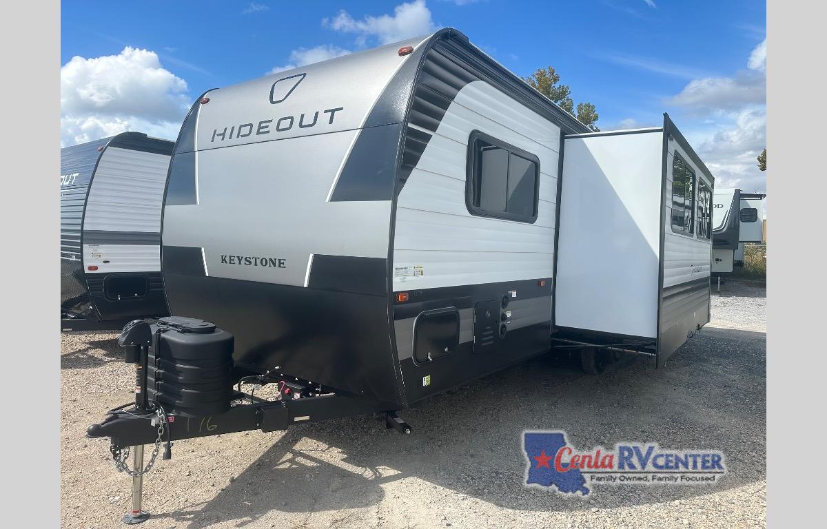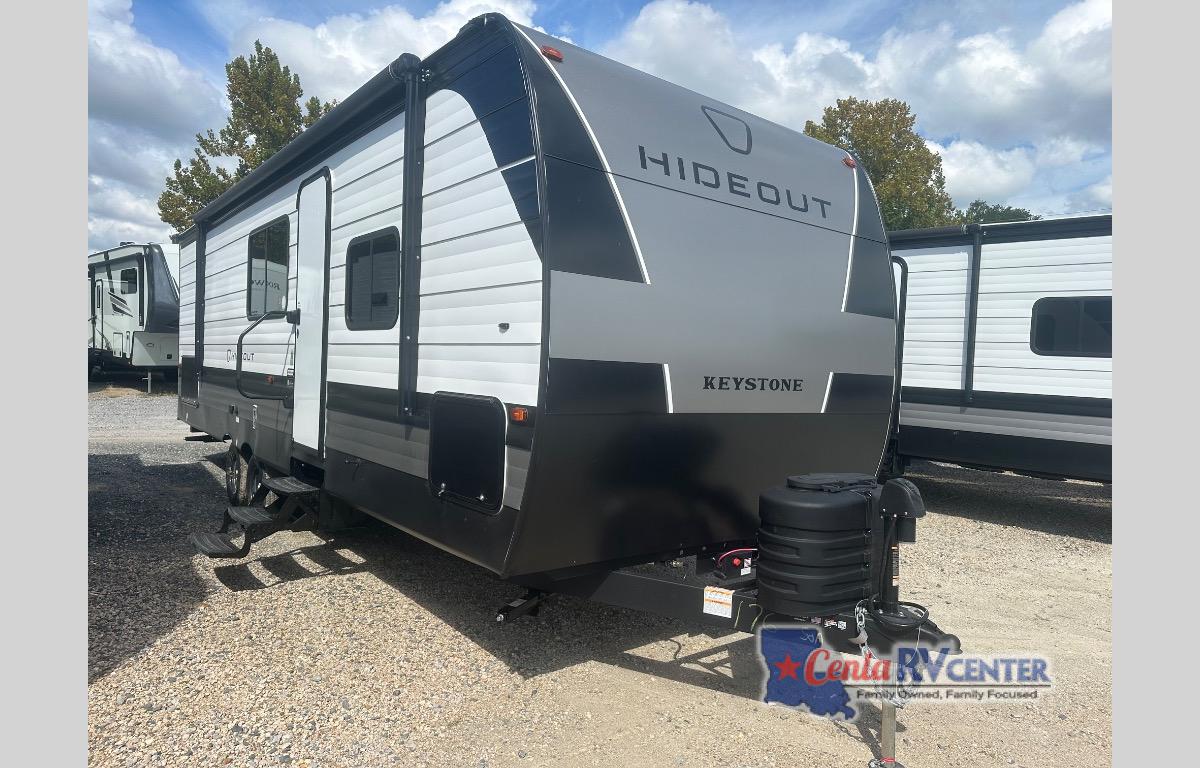 With any Hideout Sport travel trailer by Keystone you will enjoy simplified camping solutions that won't break the bank! Each model is constructed with a durable AlphaPly TPO roof membrane tinted safety glass windows, and an I-beam frame. There are power tongue jacks and heavy duty stabilizer jacks that will make it easier than ever to hitch up and go. An XL entry assist handle will also provide convenience, along with a power awning that will provide much wanted shade during the day. You will feel right at home with stylish decor, blackout night shades, and cozy bed with storage underneath!