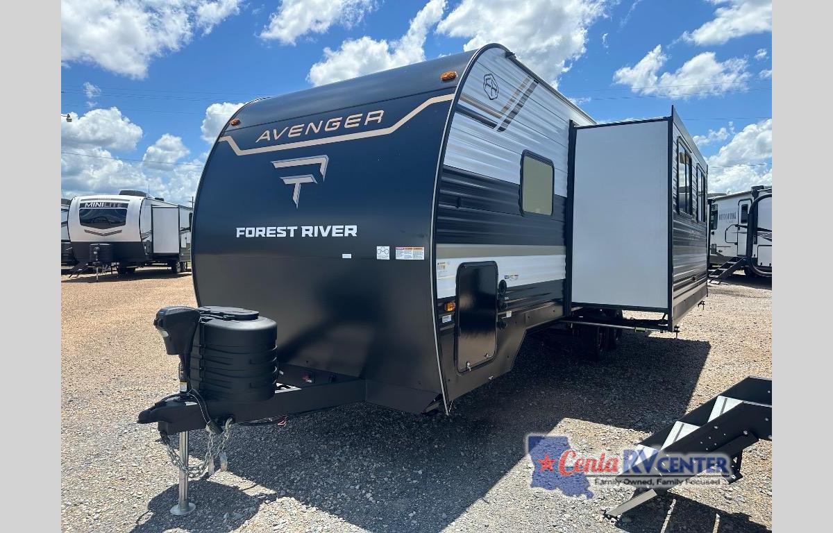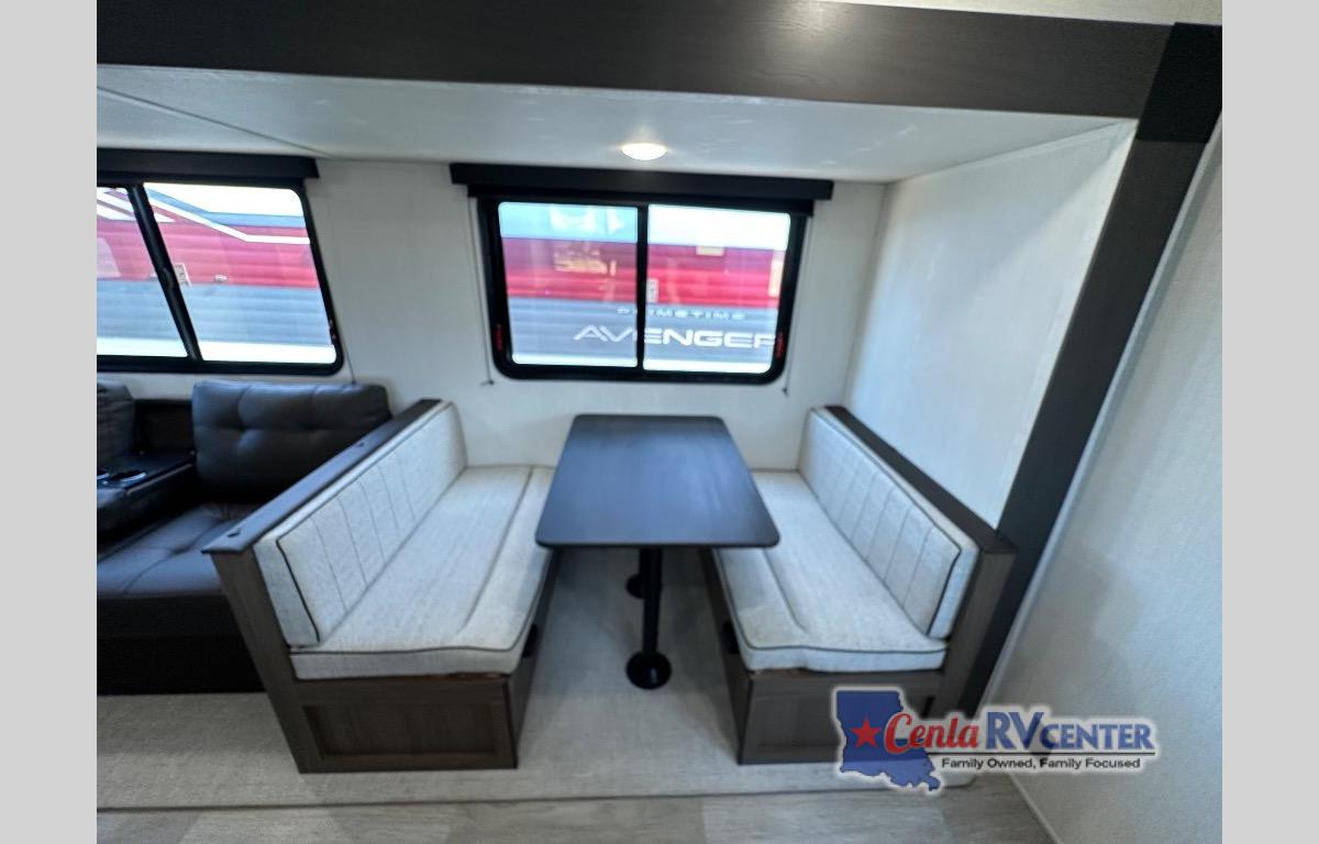 With any Avenger travel trailer by Prime Time RV, you will find innovation, a solid build, and comfort at every turn. Each model is built with Tuff Coat on the exterior metal, a fully enclosed underbelly, and a PVC roof membrane to help extend the life of your trailer. You will also find automotive name badging on the exterior, along with an exterior shower, front rail LED light strips, plus an XL padded entry grab handle to name a few conveniences. There are plenty of storage spaces inside, as well as Congoleum flooring and woven PVC marine grade slide out flooring, a designer shower surround, and seamless pressed countertops. You are sure to appreciate the onboard water filtration system, tankless water heater, plus 30K BTU furnace and 15K ducted A/C to help keep you comfortable.