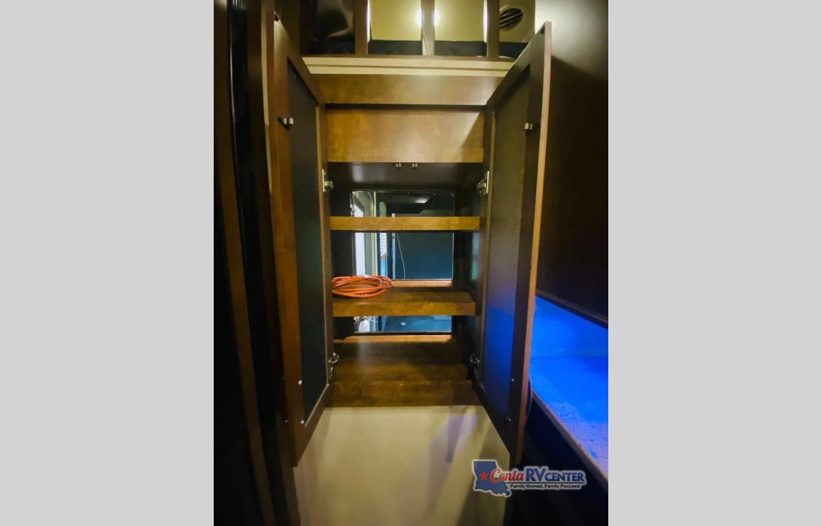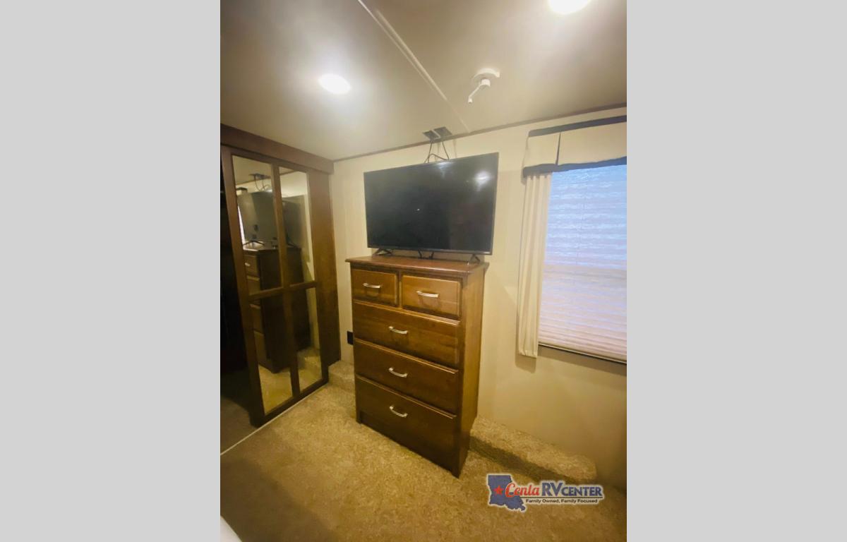 As you continue passed the bathroom down the hall you come to a front private bedroom with a comfy slide-out queen bed with a pull-out ottoman at the foot. Enjoy a spacious walk-in closet with shirt storage and washer/dryer prep space. There is also a dresser for more storage plus so much more.