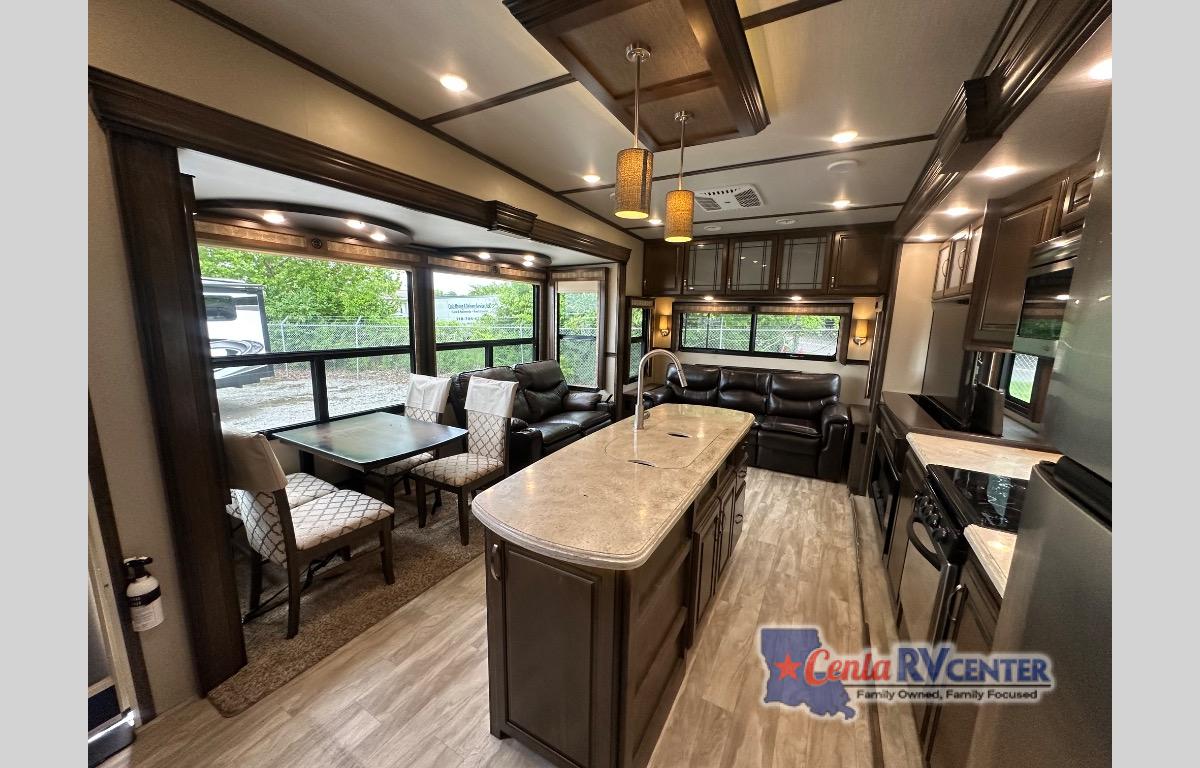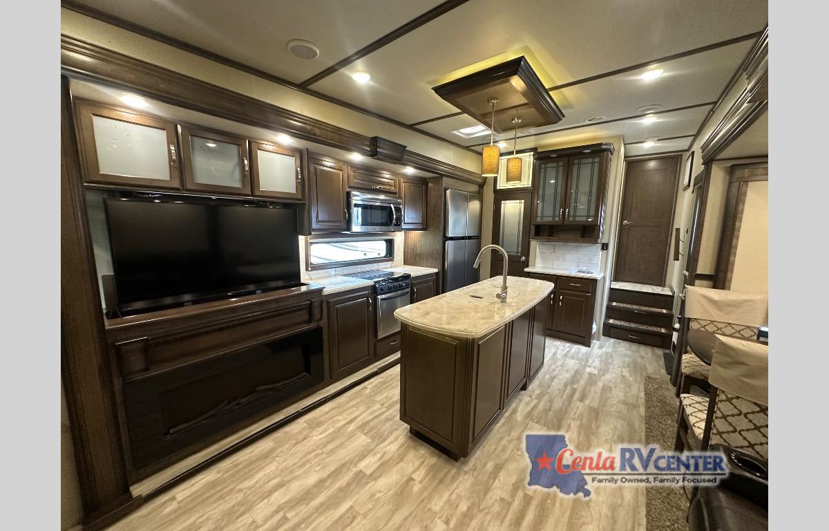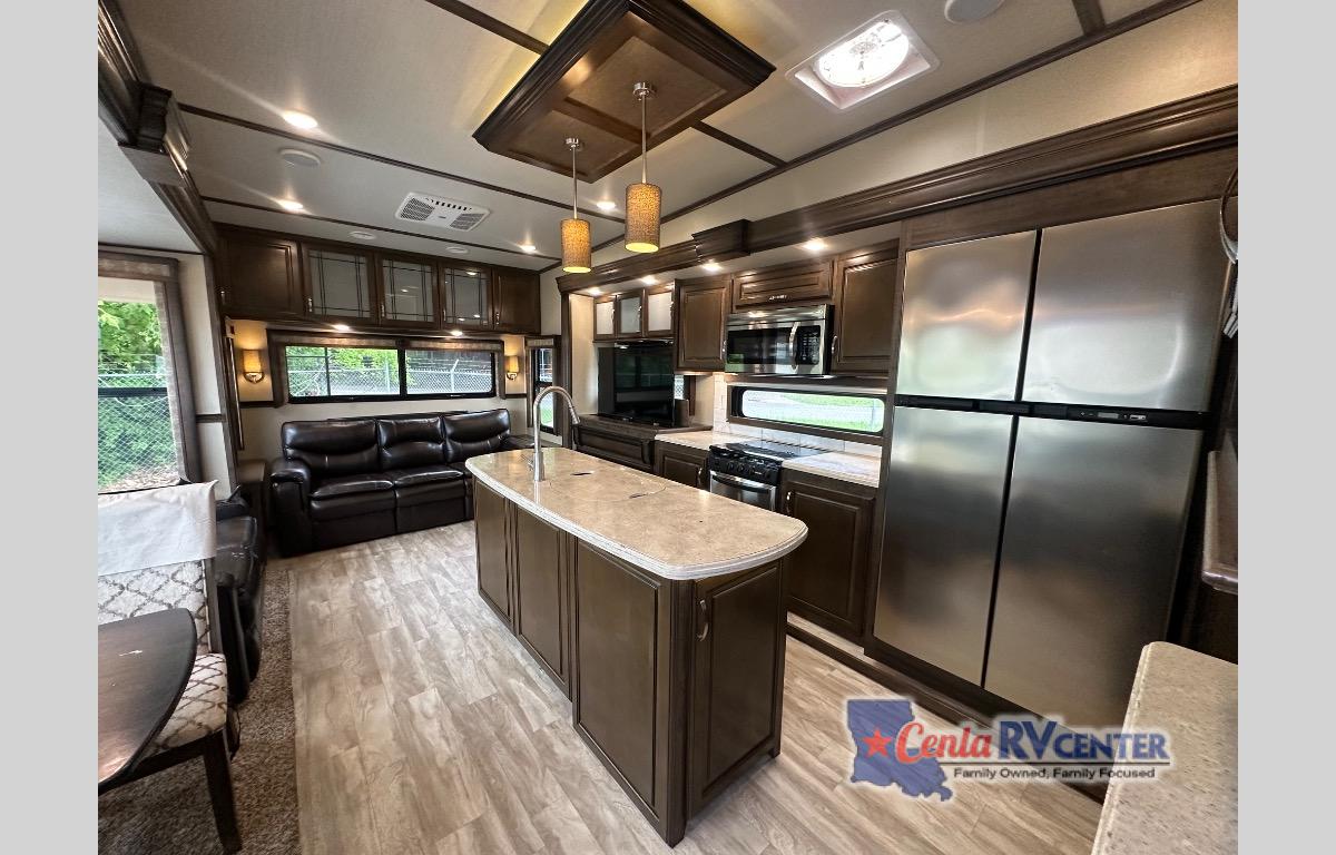 If you are on the search for a livable fifth wheel for those month long trips this Solitude 310GK R might be the one! Just imagine cooking on a professional grade stainless steel cooktop and inside a built-in oven or convection microwave. You can prepare the meals on the kitchen island, and store leftovers in the stainless steel 18 cu. ft. residential french door refrigerator. When you and your spouse aren't outside, you can watch your favorite show on the big screen LED TV in the living area while staying warm by the fireplace. You will find plenty of storage throughout including for your shoes, dry goods, linens, and your wardrobe. You might even like to choose a few options such as adding a washer and dryer, a dishwasher, a king size bed, or even a pull-out kitchen outside. Come see how this Solitude will make life comfortable for years to come!