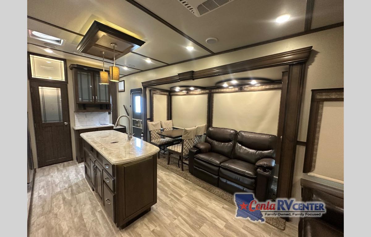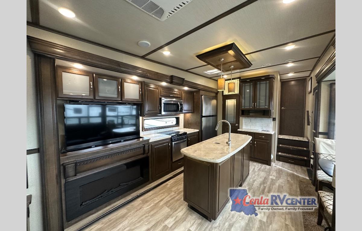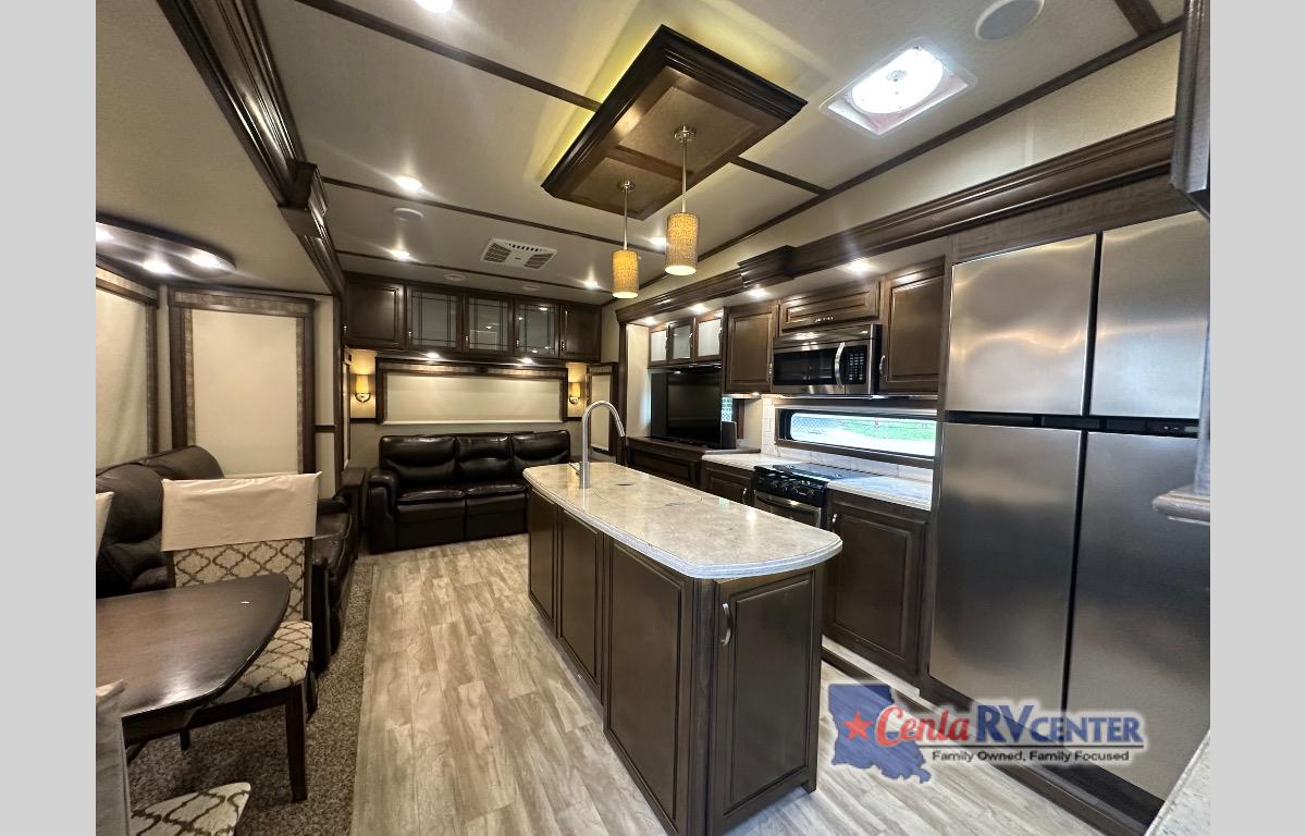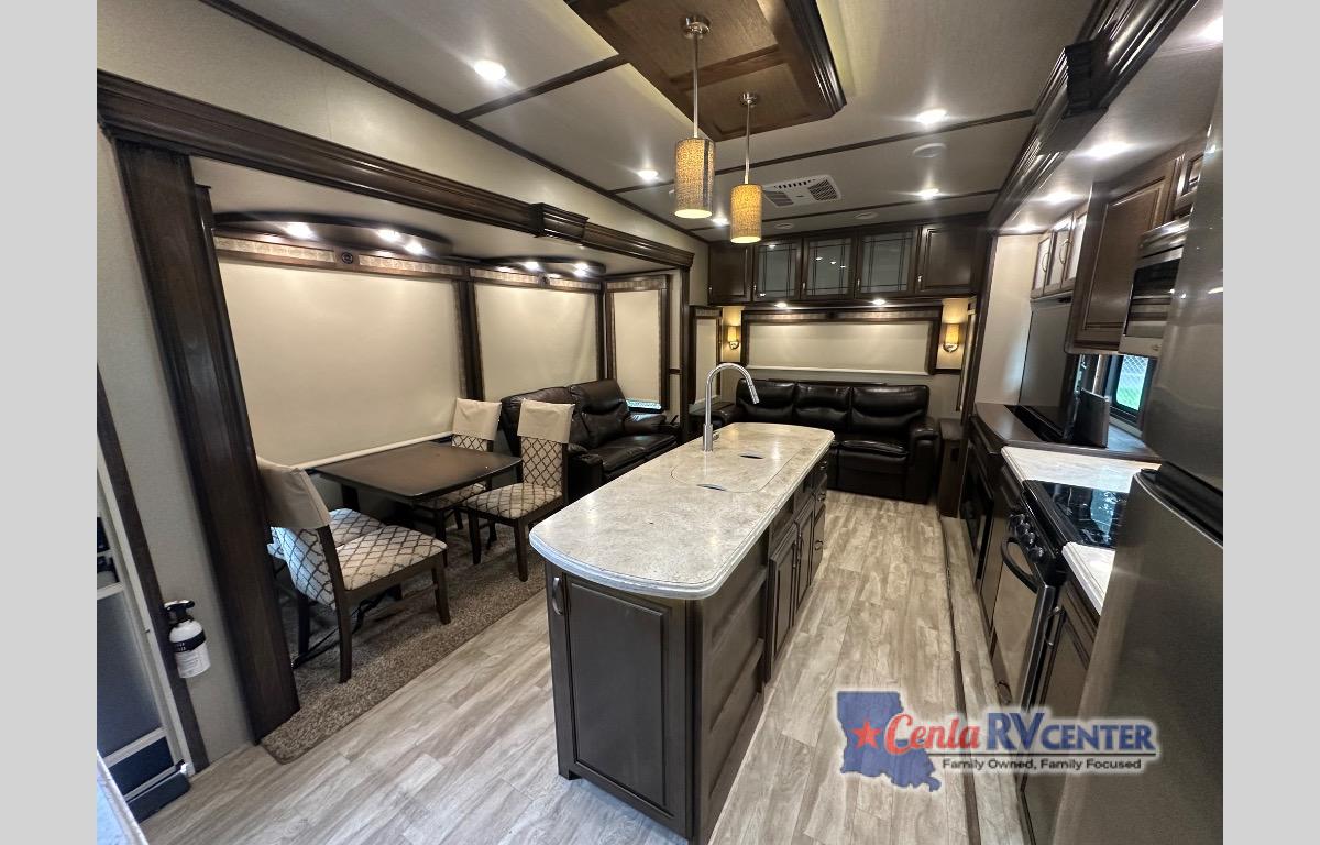 If you are on the search for a livable fifth wheel for those month long trips this Solitude 310GK R might be the one! Just imagine cooking on a professional grade stainless steel cooktop and inside a built-in oven or convection microwave. You can prepare the meals on the kitchen island, and store leftovers in the stainless steel 18 cu. ft. residential french door refrigerator. When you and your spouse aren't outside, you can watch your favorite show on the big screen LED TV in the living area while staying warm by the fireplace. You will find plenty of storage throughout including for your shoes, dry goods, linens, and your wardrobe. You might even like to choose a few options such as adding a washer and dryer, a dishwasher, a king size bed, or even a pull-out kitchen outside. Come see how this Solitude will make life comfortable for years to come!