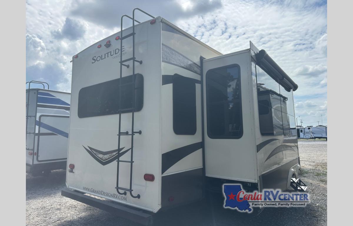 With each Solitude fifth wheel by Grand Design you will receive affordable luxury for your extended stays or weekend get-a-ways. From the solid foundation including a Equa-Flex suspension to the taller ceilings, taller and deeper cabinets, the power reclining theatre seating with swivel table including a heat and massage function, a pet dish drawer, a Stealth AC system, and the Weather-Tek package which allows you to travel any season you choose. It's time to enjoy luxury living where ever you decide to land.