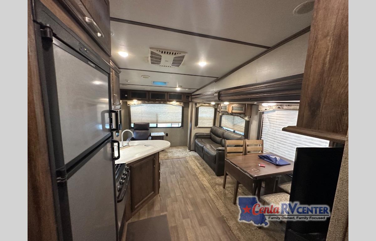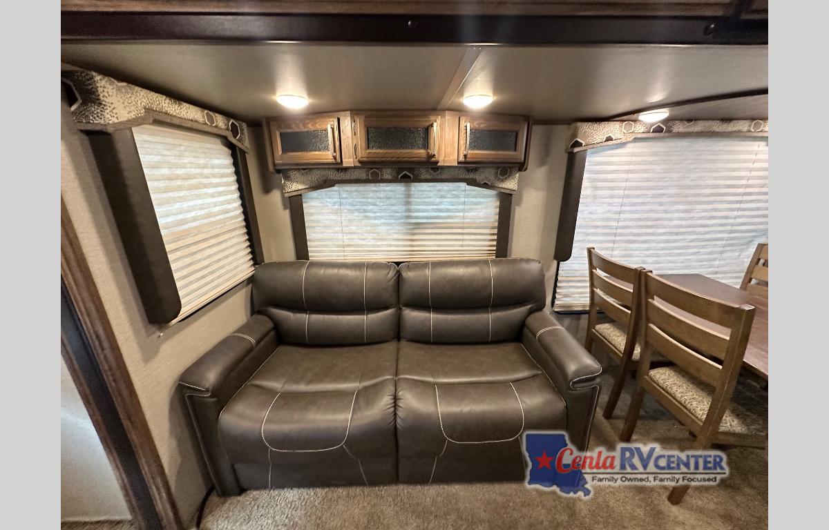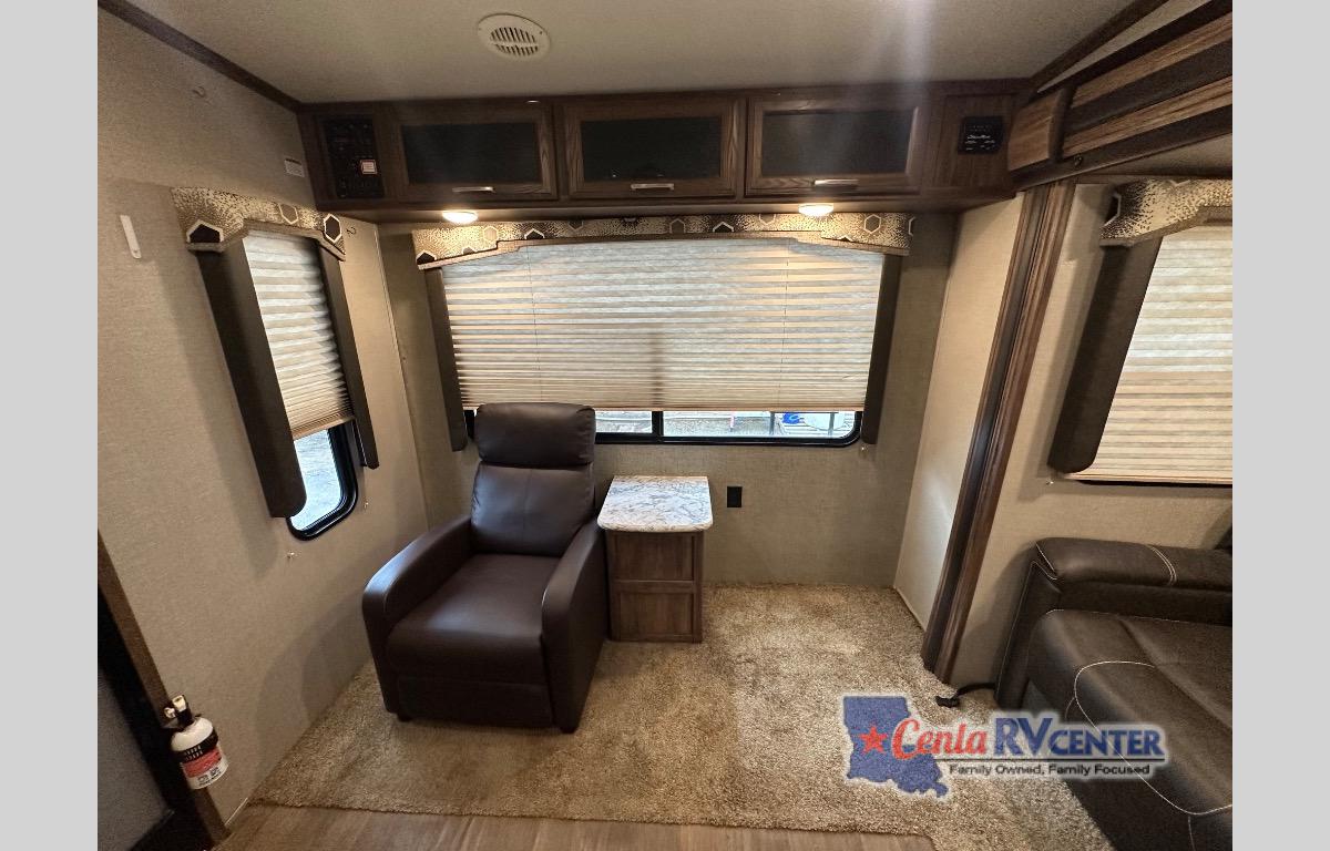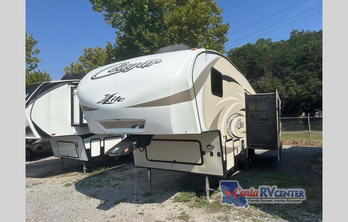 This Cougar X-Lite fifth wheel by Keystone RV offers a rear living layout with recliners, a large single slide in the living/kitchen space, a front bedroom with a walk-through bath, and more!