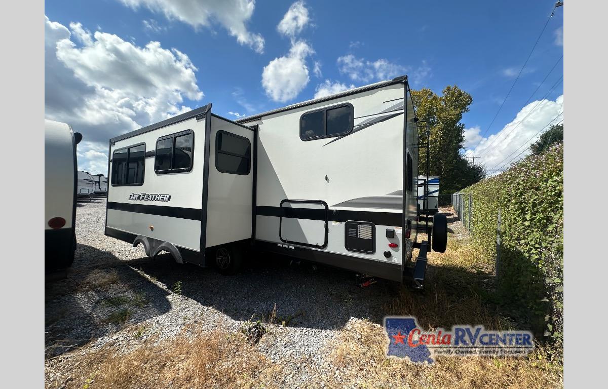 With any Jay Feather travel trailer by Jayco, you will experience an easy-to-tow, lightweight dual axle RV that is built on an American-made frame with an aerodynamic, rounded front profile with a diamond plate to protect against road debris, and includes Azdel composite in the perimeter walls, and Stronghold VBL vacuum-bonded, laminated floor and walls, plus the Magnum Truss roof system. Also included are features in the Customer Value package, and the Sport package which offers aluminum tread entry steps, roof-mount solar prep, an LED TV, and the Glacier package which includes an enclosed underbelly. The interior provides residential-style kitchen countertops with a decorative backsplash, residential plank-style vinyl flooring for easy care, a decorative wallboard for style, and ball-bearing drawer guides with 75 lb. capacity to mention a few of the amenities. Choose your favorite today!