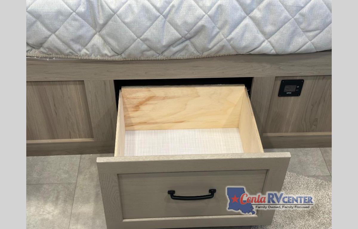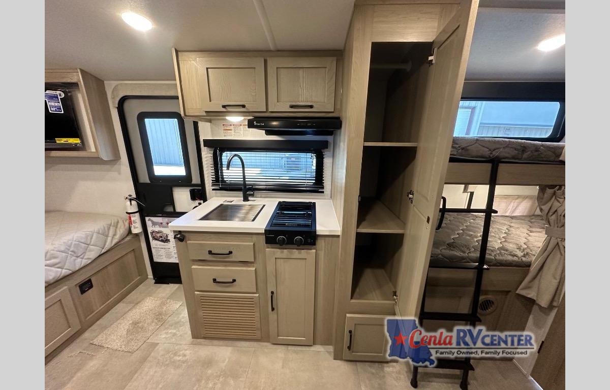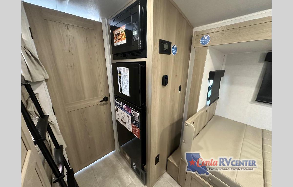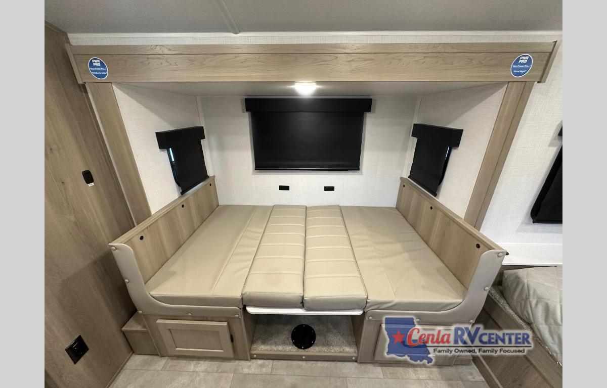 You're going to love camping with your family or friends in this spacious bunk model! The bunk beds will be perfect for little ones, while you take the front full-size bed. There is also a 44" booth dinette within the slide out for additional sleeping and seating space. The kitchen includes everything the chef will need to prepare meals each day, including a recessed cooktop, microwave oven, and a 12V refrigerator for perishables.And check out the exterior bike door that will be perfect for bikes, luggage, or extra camp gear. The optional Power Package available on this model includes three 200W solar panels, a 460 Ah Mastervolt MLI lithium-ion battery, two smart remotes, and more off-grid features!