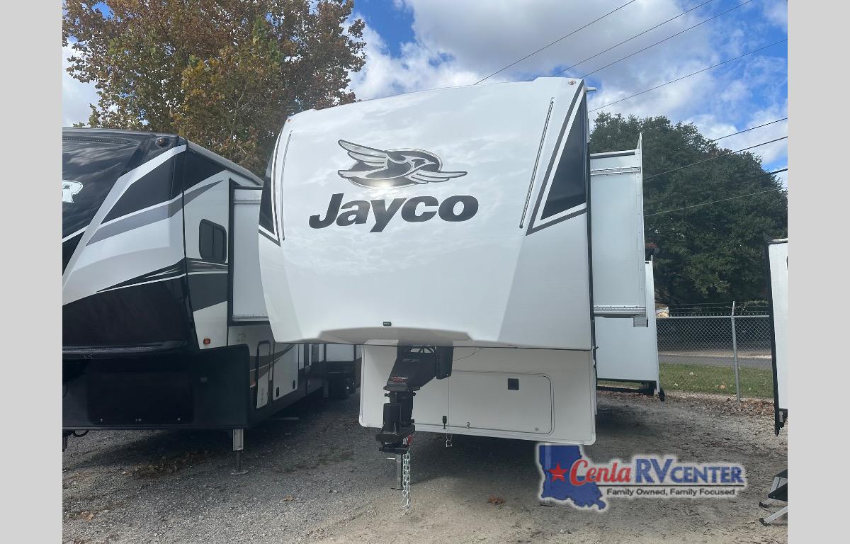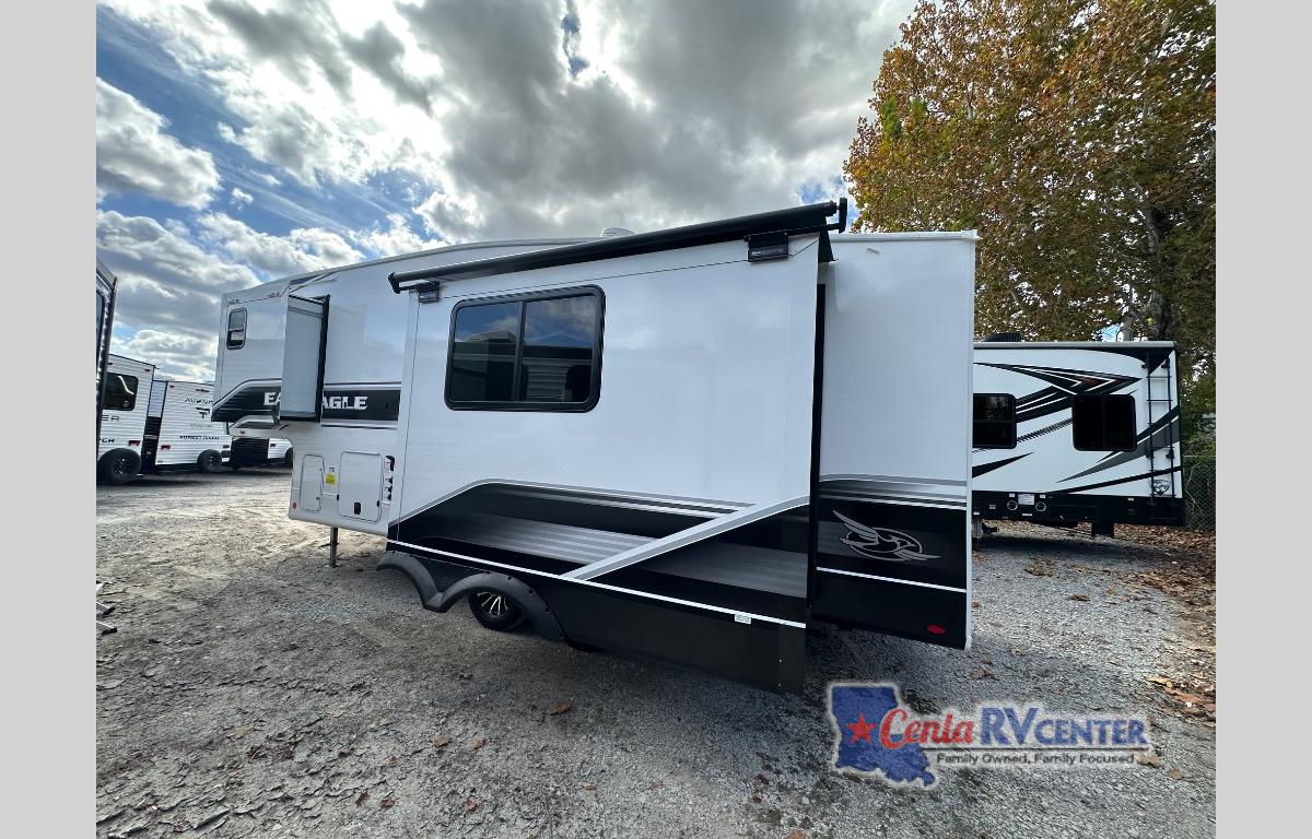 With any Eagle SLE fifth wheel by Jayco, you will enjoy a lighter tow weight, high-end finishes, and the same quality construction you've come to expect from Jayco! There is an Alpha Ply TPO roof membrane, a fully enclosed and heated underbelly, plus Stronghold VBL walls for added durability. There is also a rear 2" towing receiver outside, along with metal slam latch baggage doors, MORryde Step Above entry steps, and a Winegard Air 360 antenna with router prep if you want to stay connected as you camp. Once inside you'll enjoy the handcrafted door/drawer fronts, shower skylight, and residential vinyl flooring throughout with no carpet for an easier clean. The on-demand water heater, 30K BTU furnace, and 15K BTU "Whisper Quiet" A/C will ensure your comfort, and the Overland 1 Solar Package will provide off-grid capabilities!